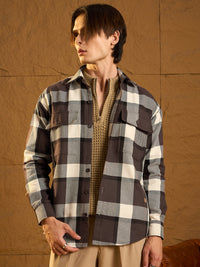 A cozy, versatile oversized Checked shacket crafted from soft cotton with a double-pocket design and dropped shoulders for a relaxed fit. The full sleeves and timeless check pattern add casual-chic appeal, perfect for layering any season.