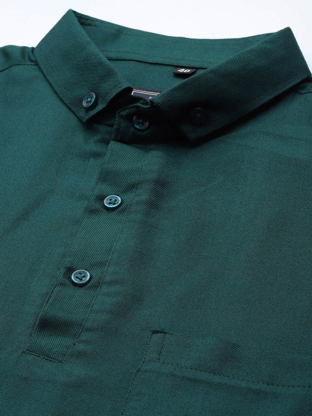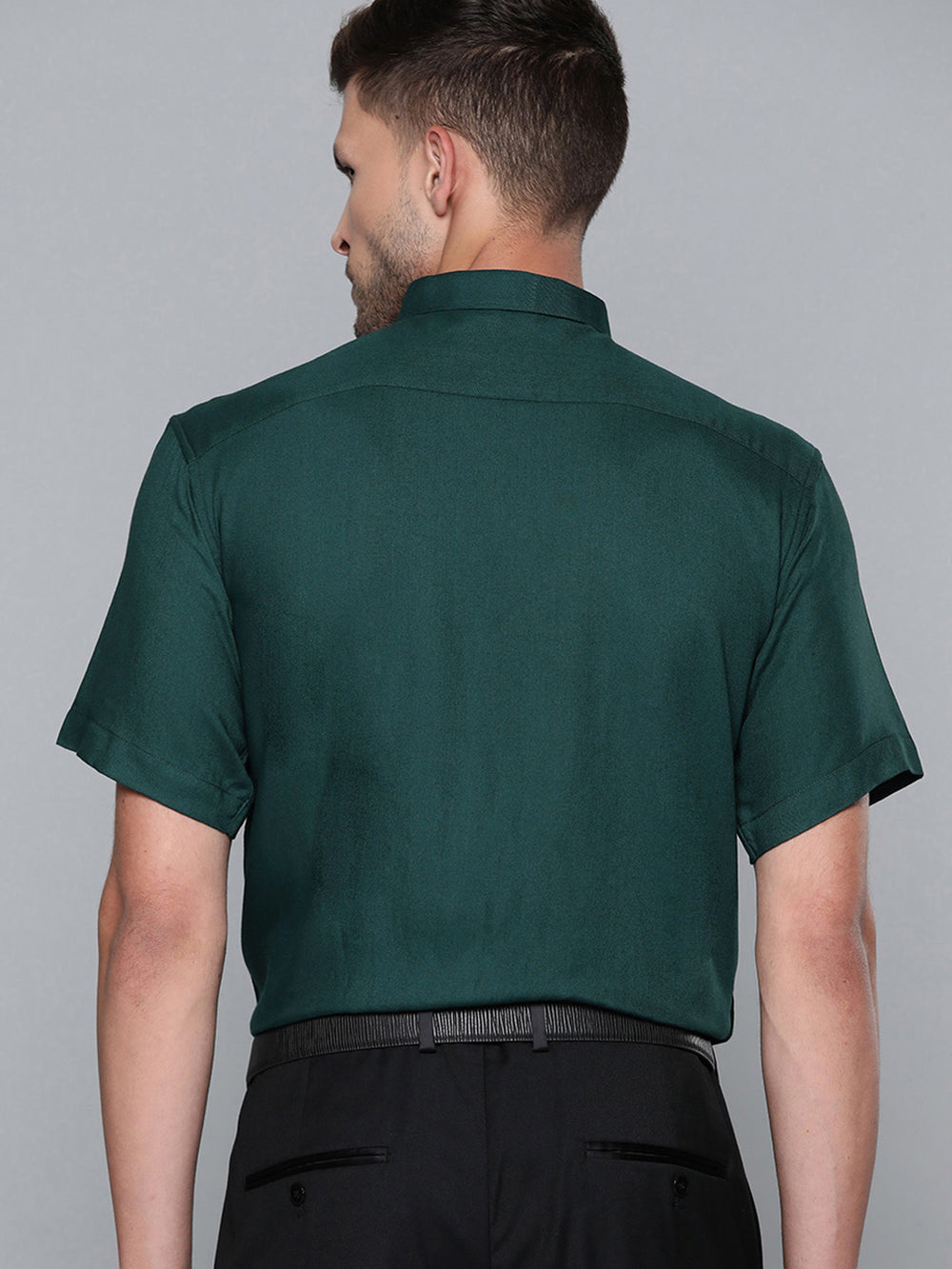 Green solid opaque Formal shirt ,has a button-down collar, button placket, 1 patch pocket, short regular sleeves, curved hem
