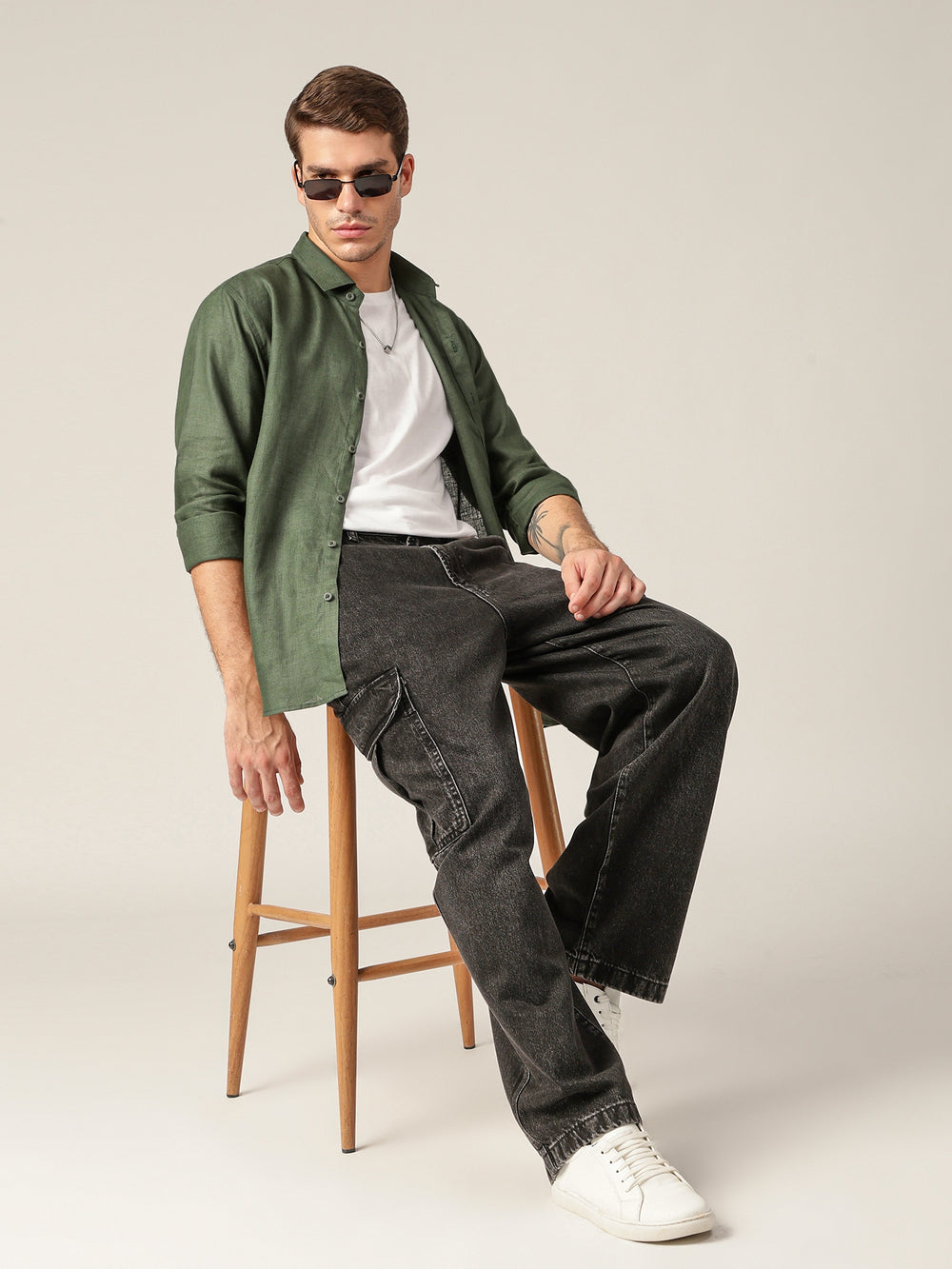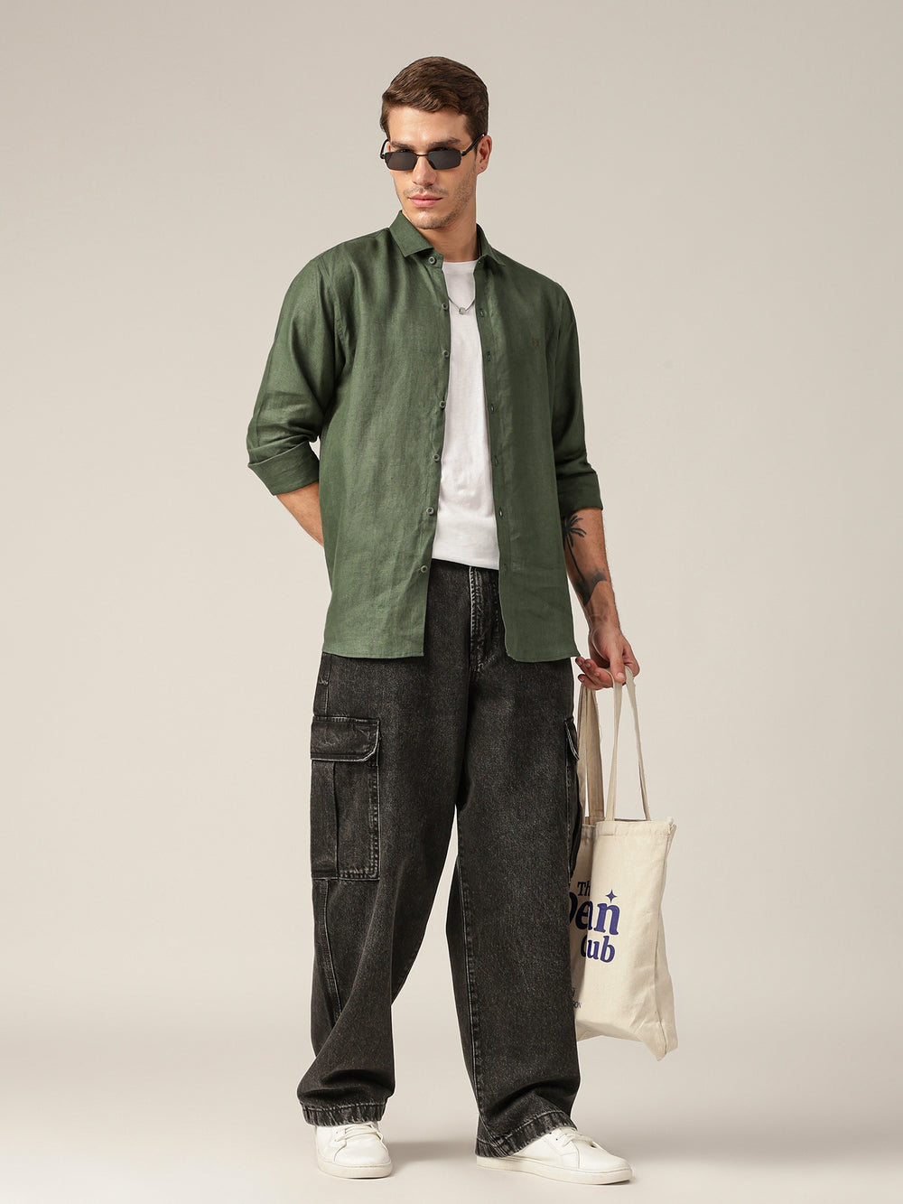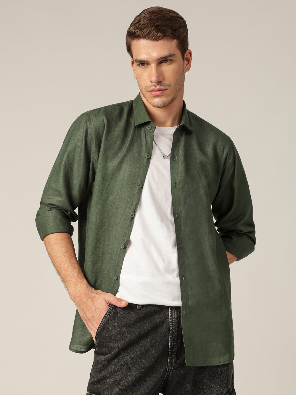 This Relaxed Fit Casual Shirt is crafted from 100% Linen for breathable comfort. Featuring a Solid design, No Pocket, Full Sleeves, Spread Collar, Curved Hemline, and an Embroidered Brand Logo. Sustainable choice for everyday wear.