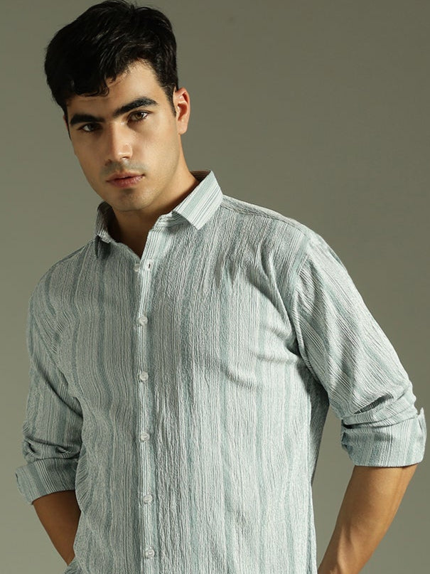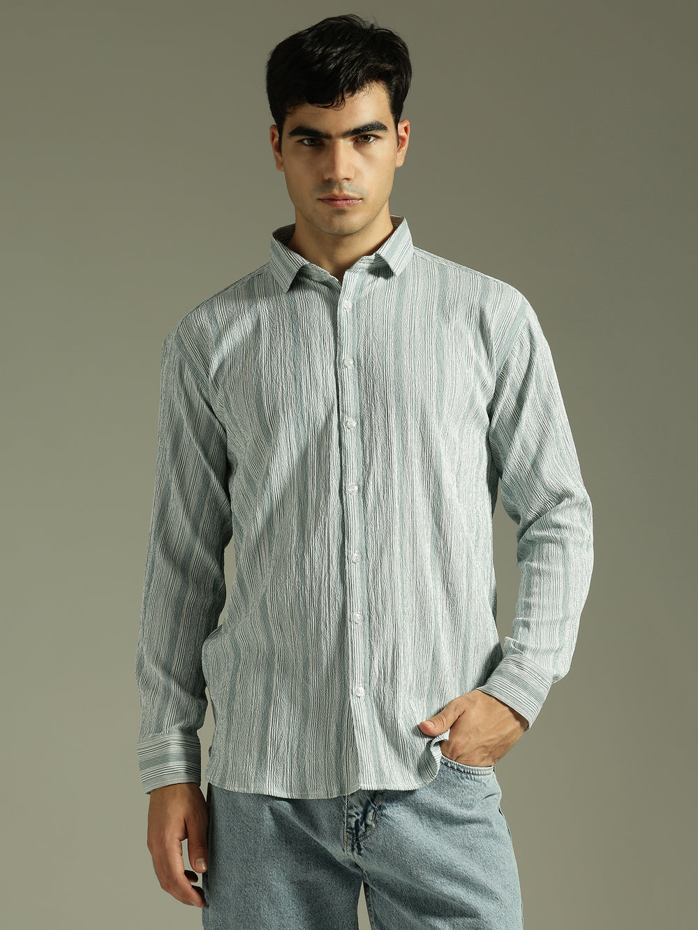 Its textured surface and self design add depth to casual dressing. Ideal for those who prefer stylish yet low-maintenance shirts with a clean, relaxed look.