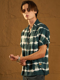 Green and Yellow Tie and Dye opaque Casual shirt ,has a Cuban collar, button placket, Double pocket, Half regular sleeves, Straight hem