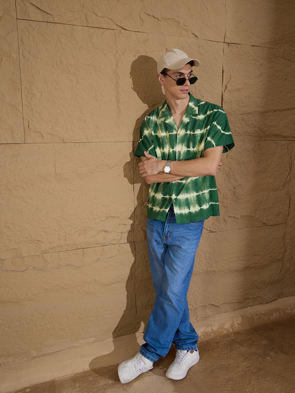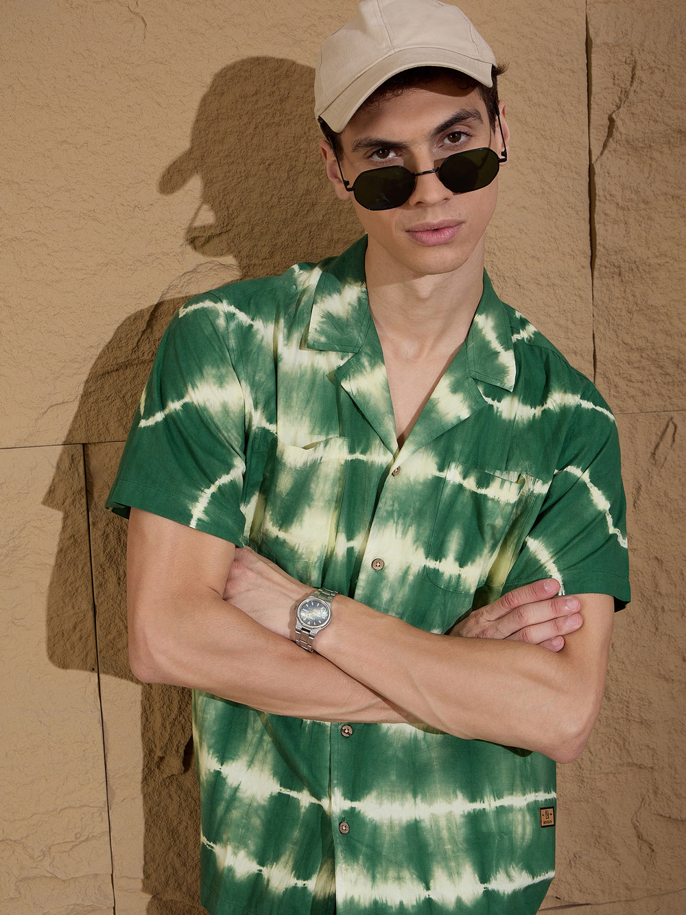 Elevate your casual wardrobe with this Men's Tie & Dye Oversized Shirt. Crafted from breathable cotton, it features a stylish Cuban collar and Half sleeves, making it perfect for laid-back outings. The vibrant tie-dye pattern adds a contemporary flair to any look. Regular length ensures versatile styling.