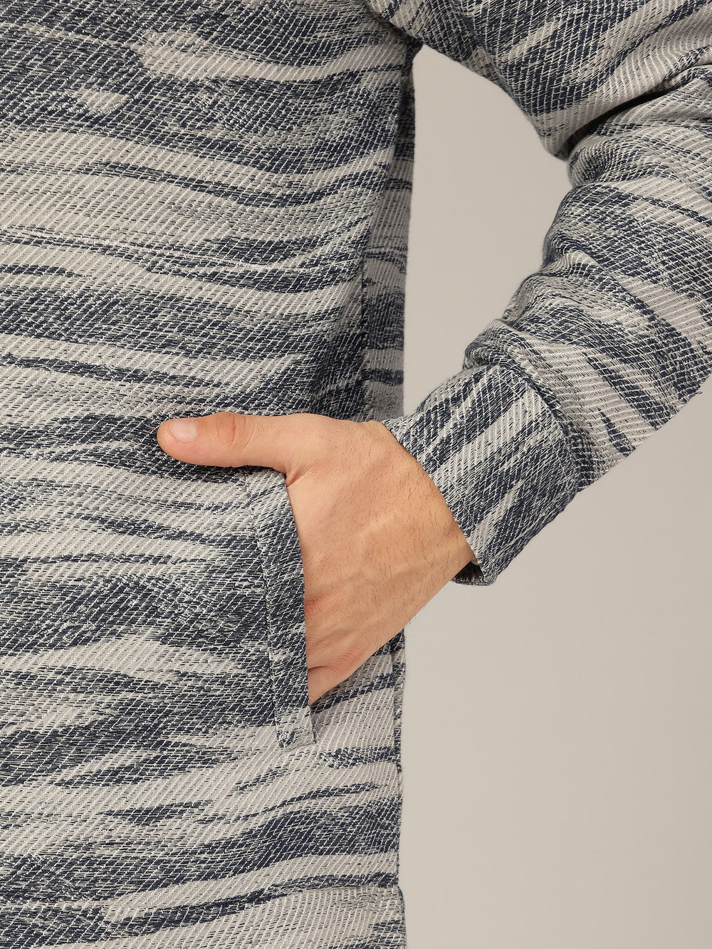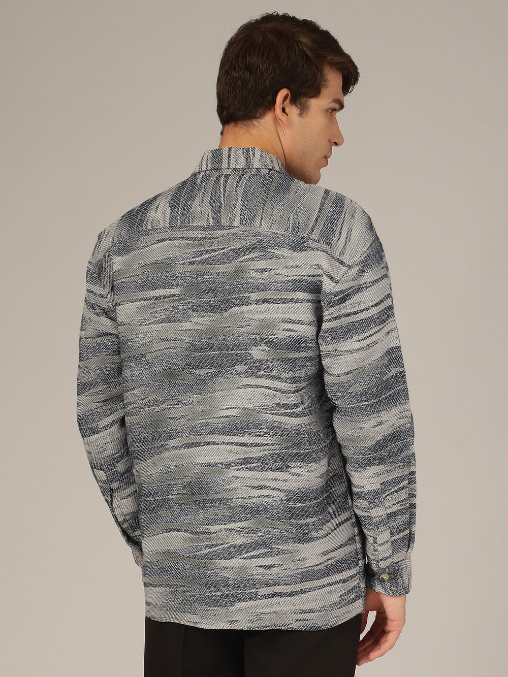 Grey Blue Jacquard Shacket
