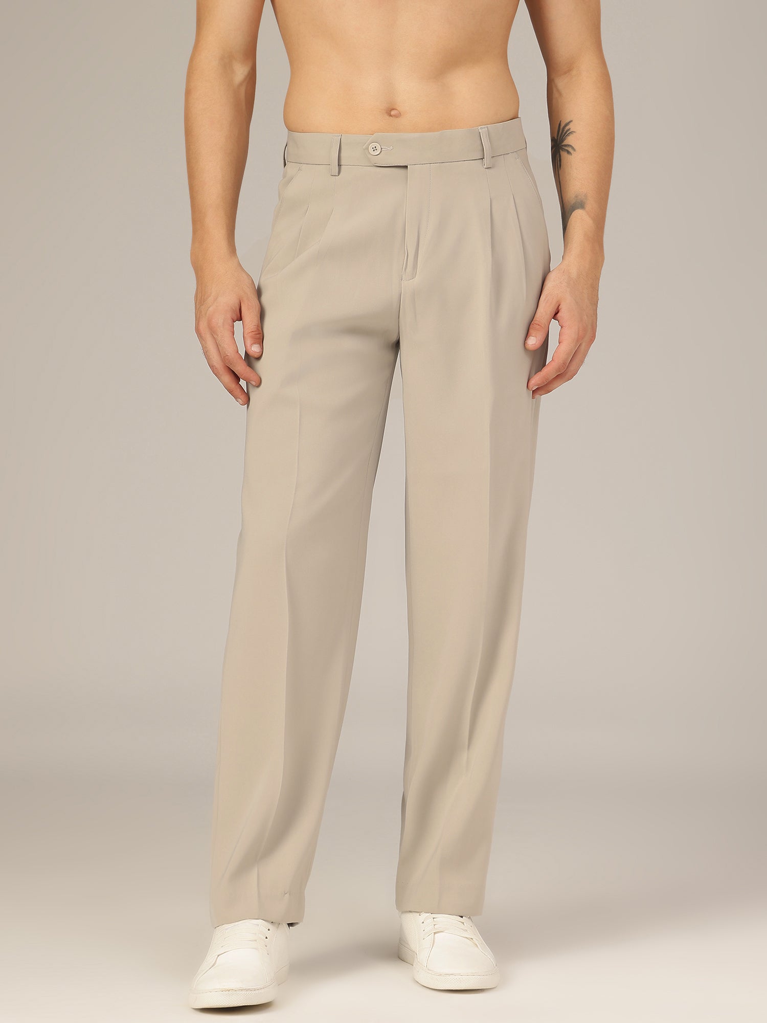 Grey: Korean Baggy Fit Double Pleated Casual Trouser