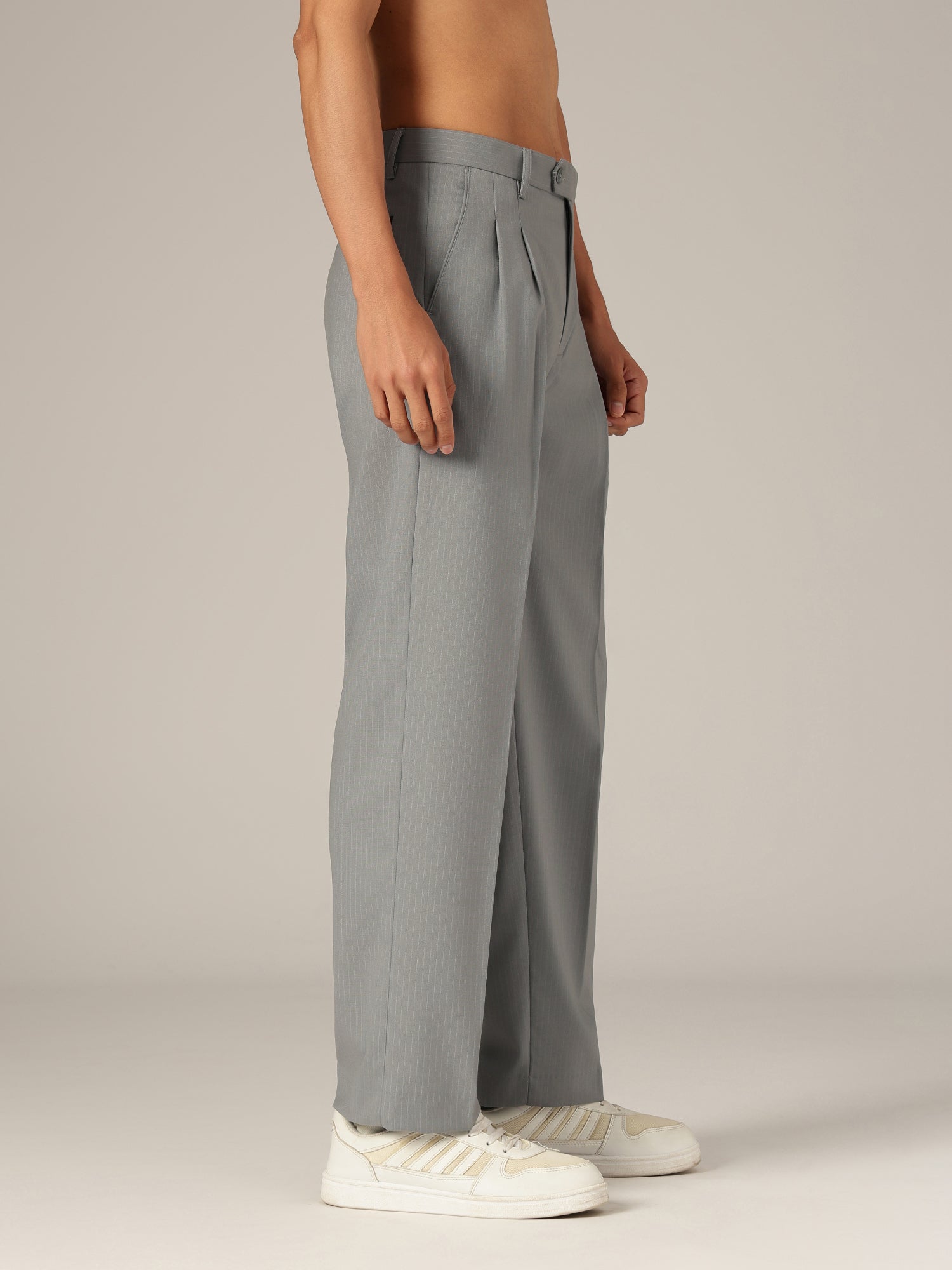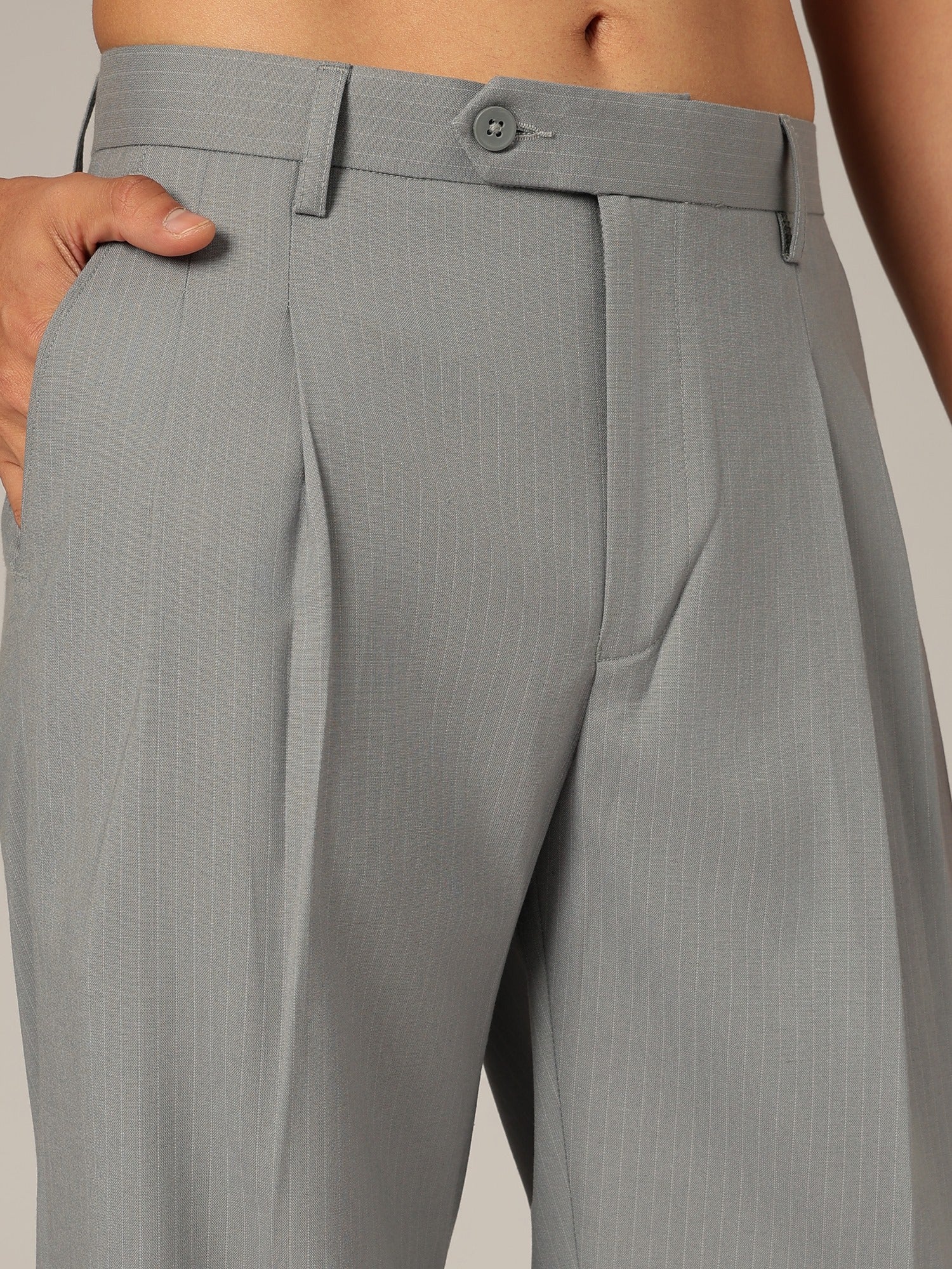 Modern Korean Trouser featuring a baggy fit with striped design, crafted in durable polyester. Double pleated structure adds shape, while button & zip closure and four pockets balance comfort with casual street-ready style.