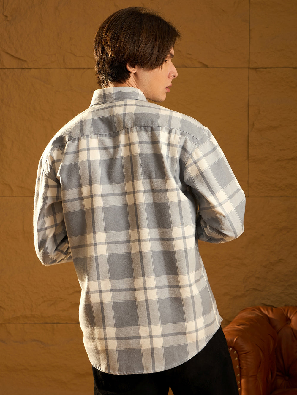 A cozy, versatile oversized Checked shacket crafted from soft cotton with a double-pocket design and dropped shoulders for a relaxed fit. The full sleeves and timeless check pattern add casual-chic appeal, perfect for layering any season.