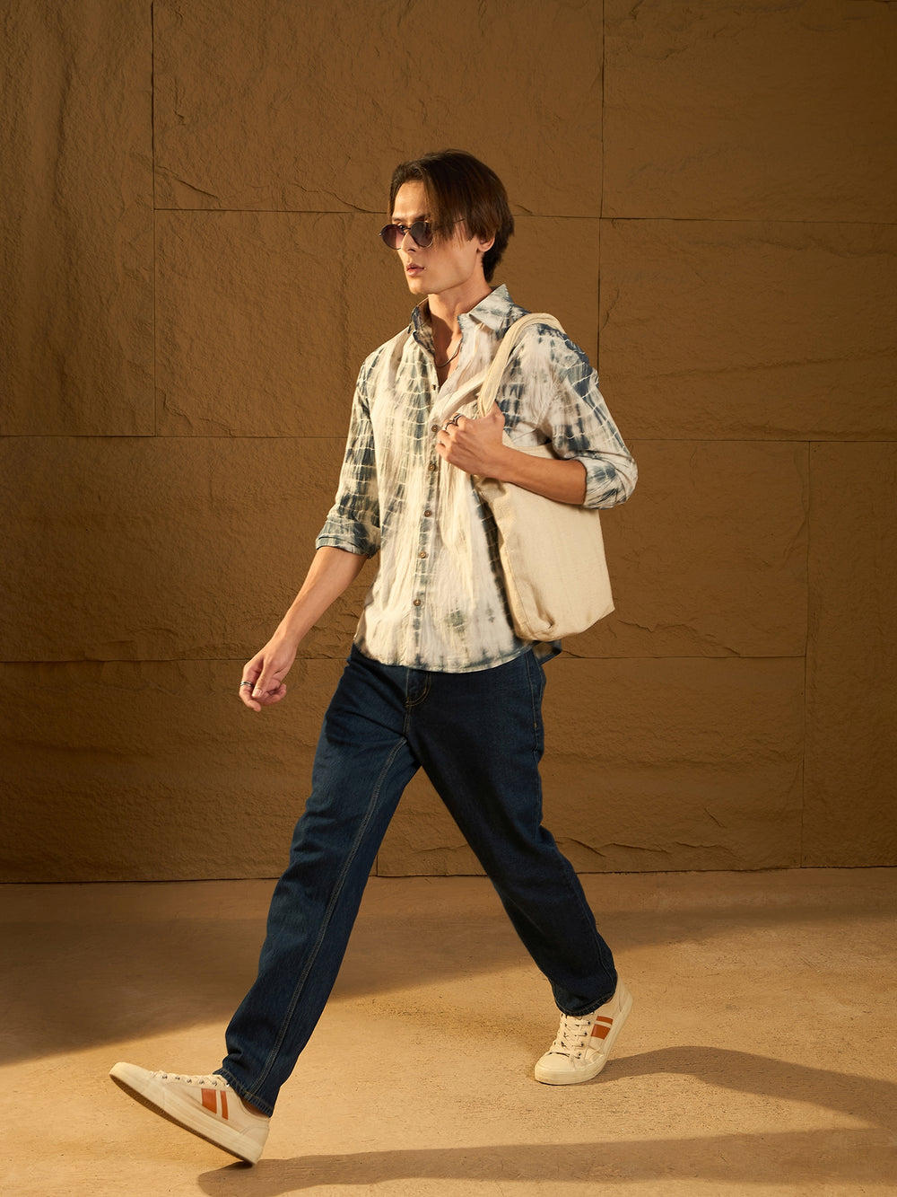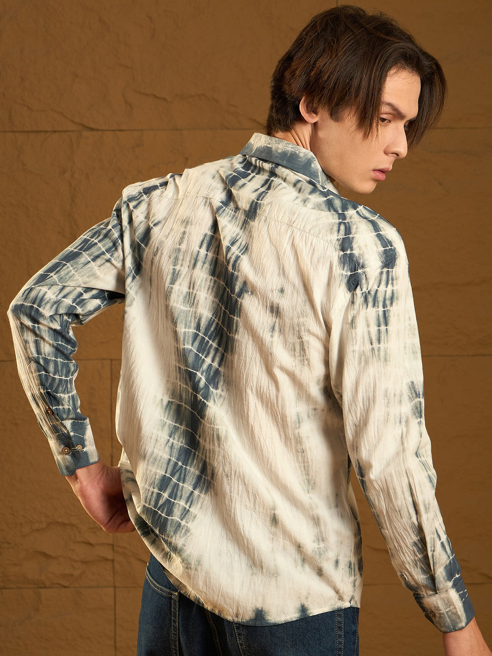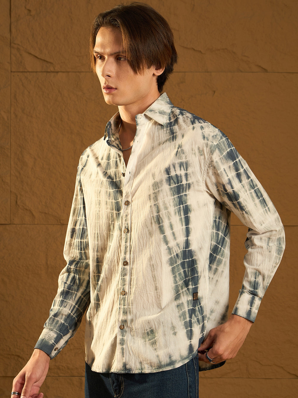 Grey and White Tie and Dye opaque Casual shirt ,has a Spread collar, button placket, no pocket, Long regular sleeves, curved hem
