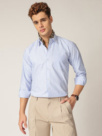 This Regular Fit Vertical Striped Shirt is crafted from durable poly cotton, featuring a classic Spread Collar, Full Sleeves, Regular Shoulders, a functional Patch Pocket, and a stylish Curved Hemline for a clean finish.