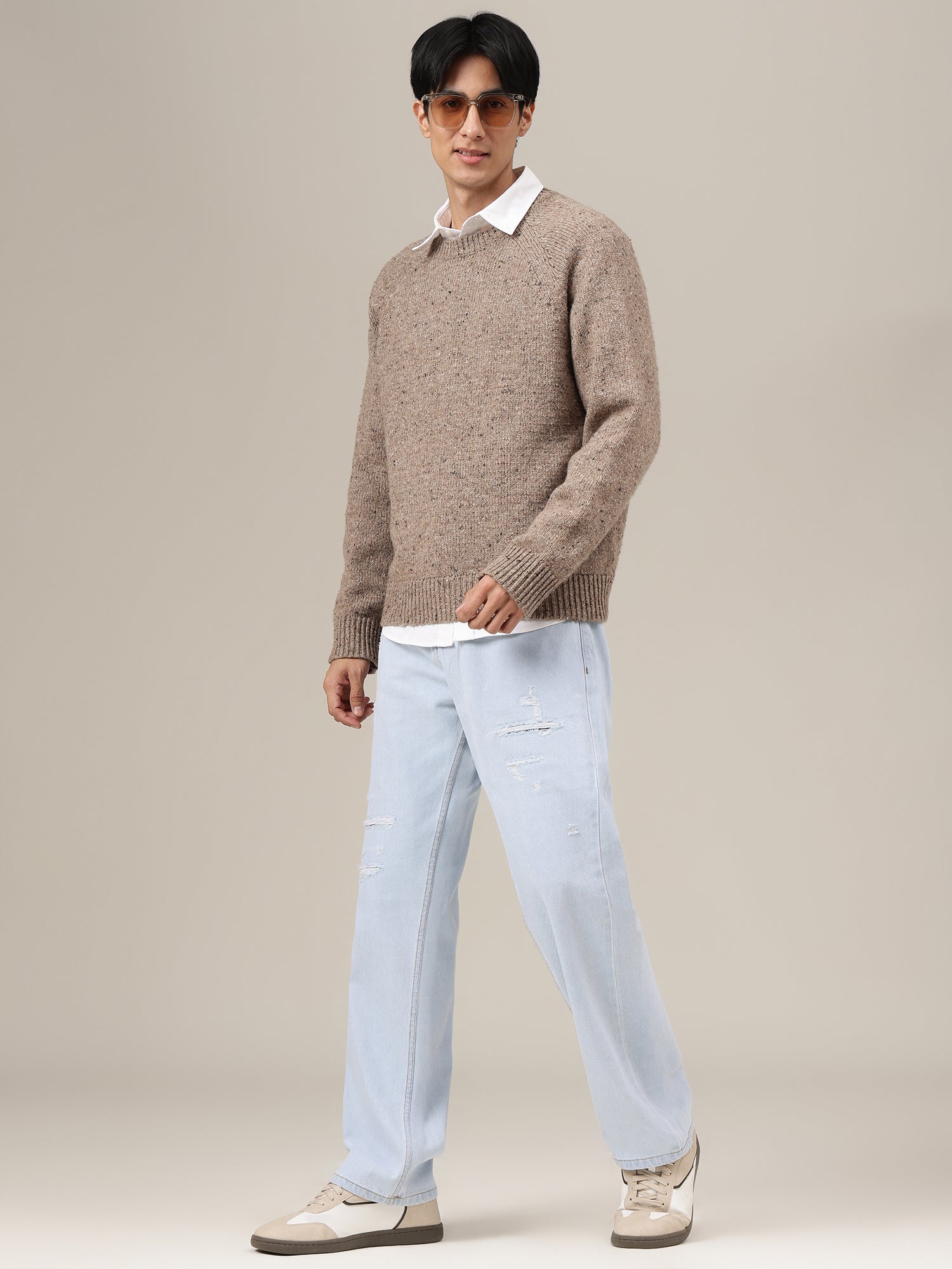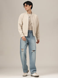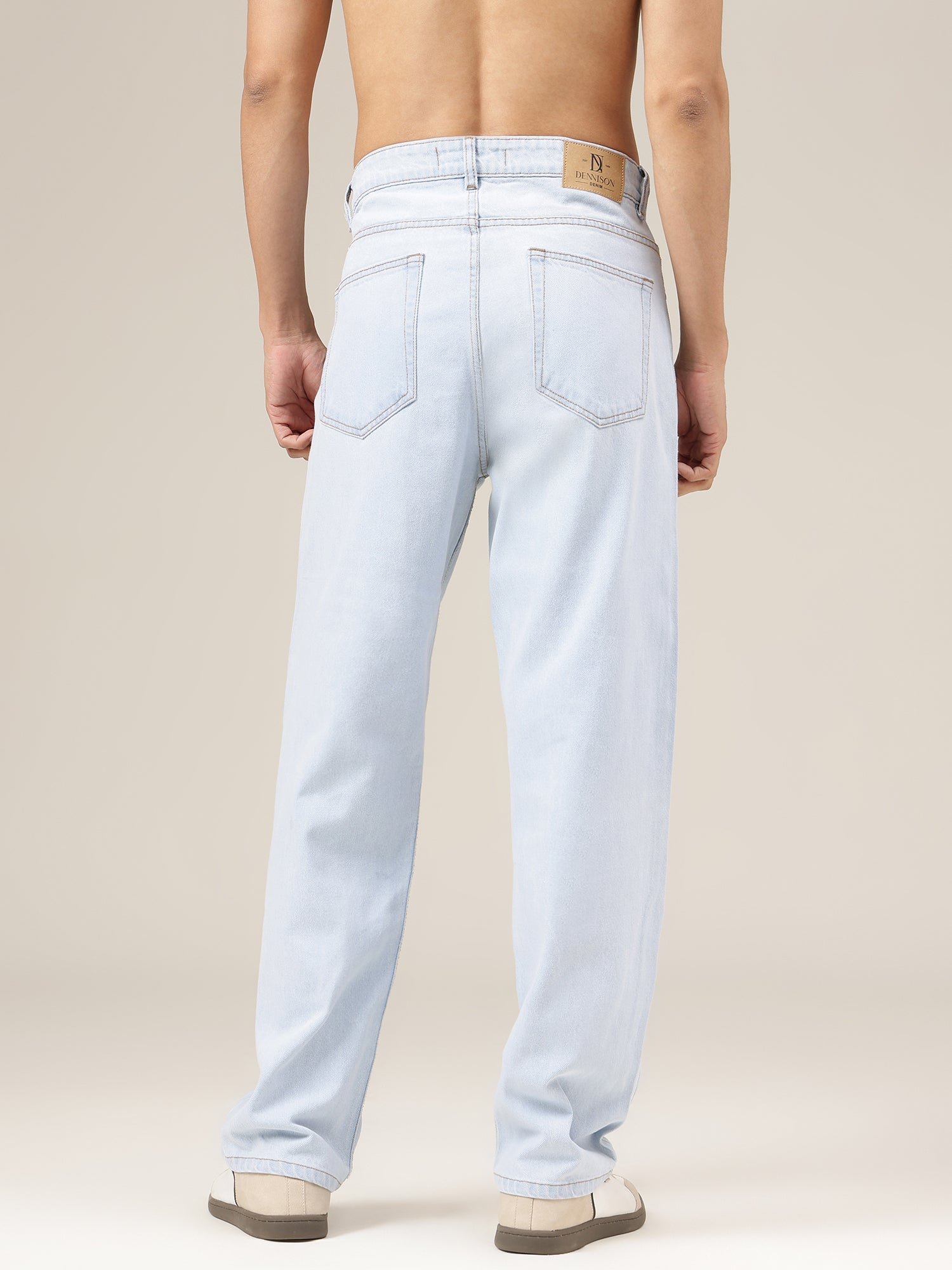 Baggy Fit jeans in a Light Shade with No Faded finish and Mildly Distressed accents. Features 5 pockets, Button & Zip Closure, and With Belt Loops, offering relaxed comfort, durability, and versatile casual style.