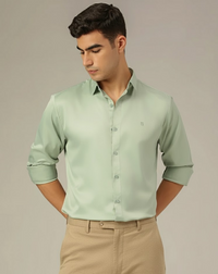 Elevate your wardrobe with this regular fit formal shirt crafted from smooth satin fabric. Designed with full sleeves, a spread collar, no pocket, and a placement brand logo for a clean, sleek look.