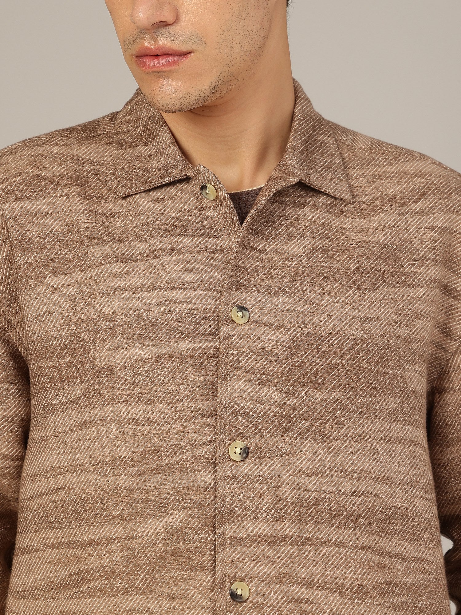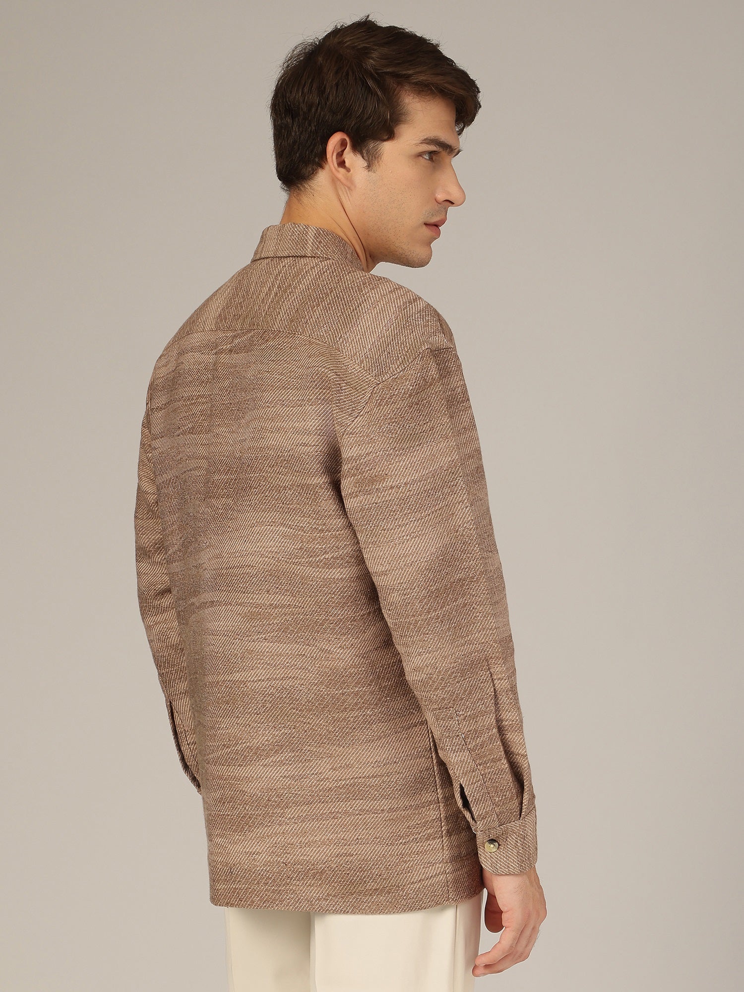 Light Brown: Jacquard Printed Oversized Drop-Shoulder Shacket