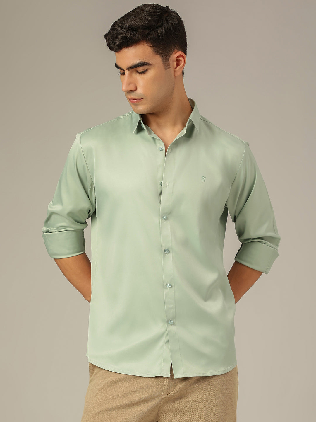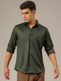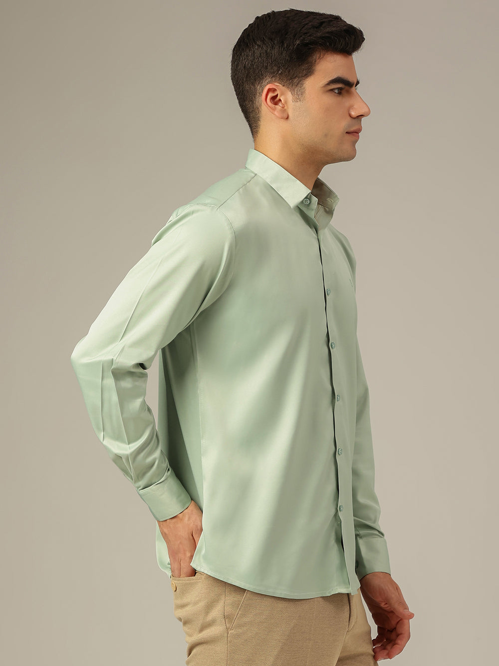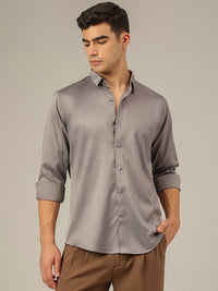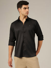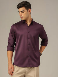 Elevate your wardrobe with this regular fit formal shirt crafted from smooth satin fabric. Designed with full sleeves, a spread collar, no pocket, and a placement brand logo for a clean, sleek look.
