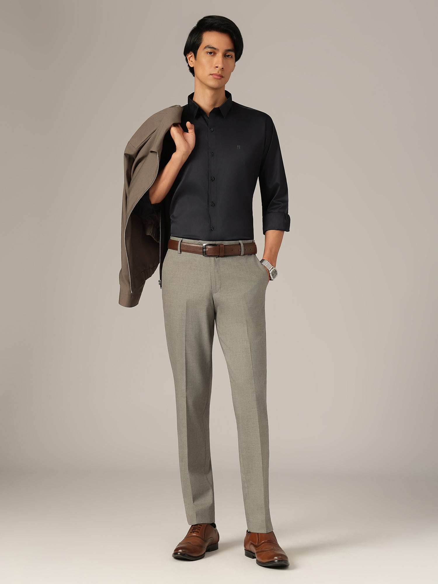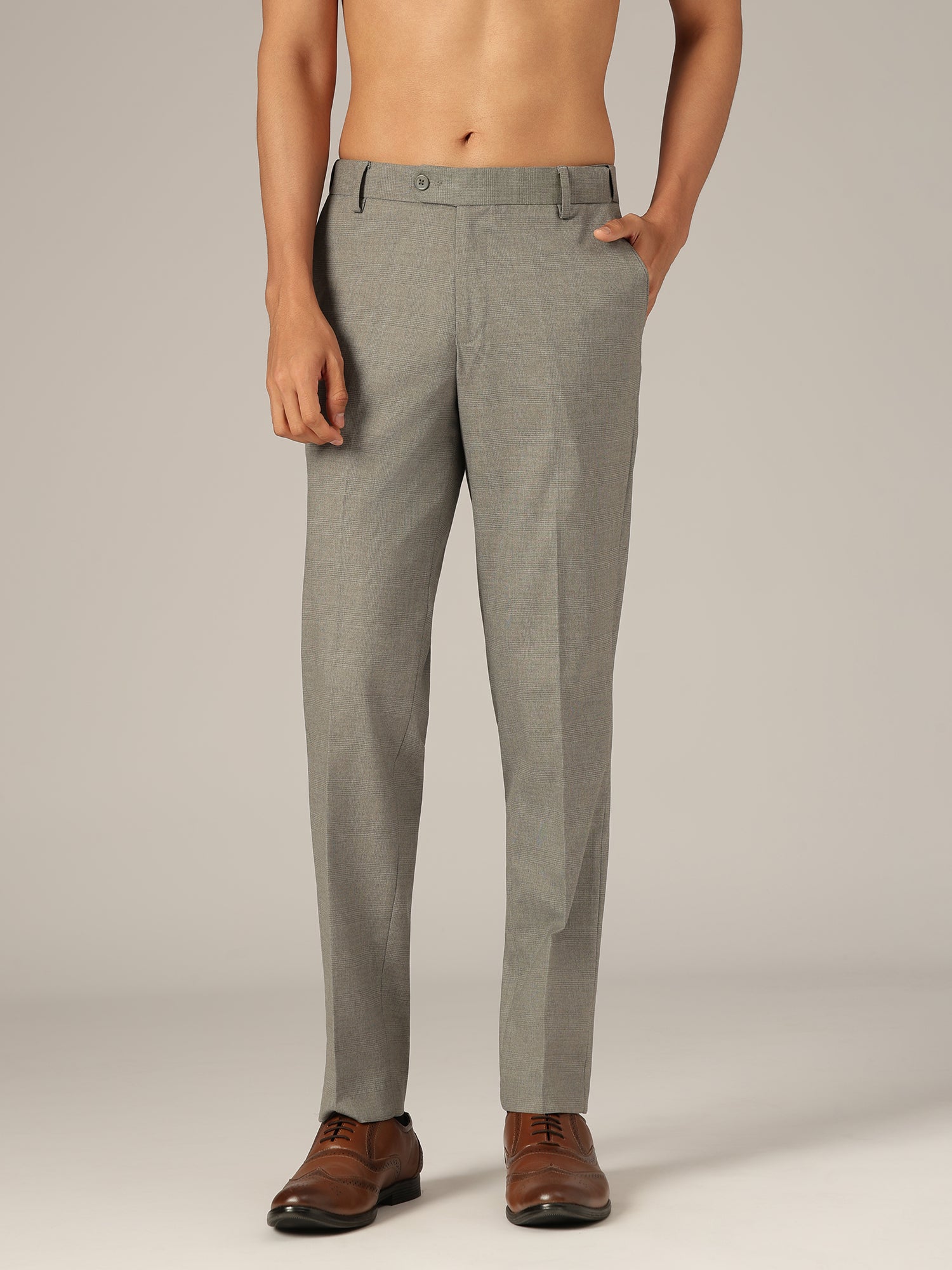 Formal Korean Trouser tailored in polyester, featuring a baggy fit with refined checkered pattern. Flat-front design, flexi waist comfort, four functional pockets, and a secure button & zip closure create a modern yet polished look.