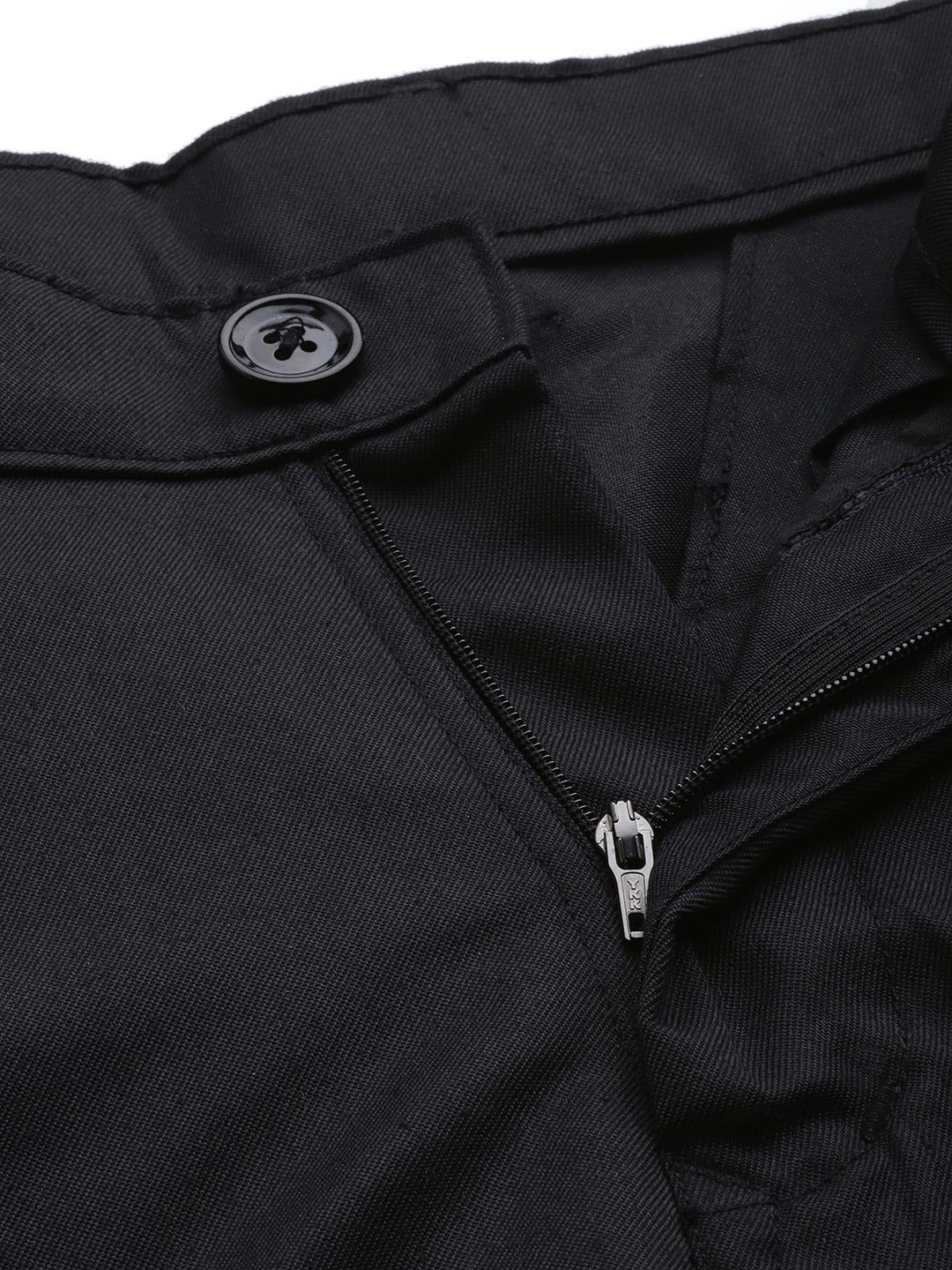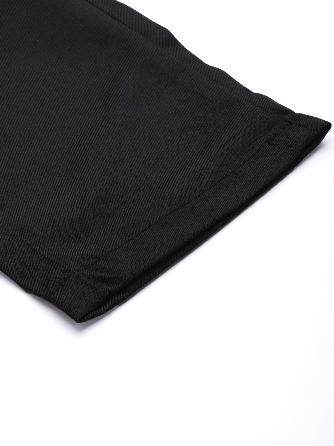 Black solid mid-rise cropped regular trousers, button and zip closure, and 5 pockets