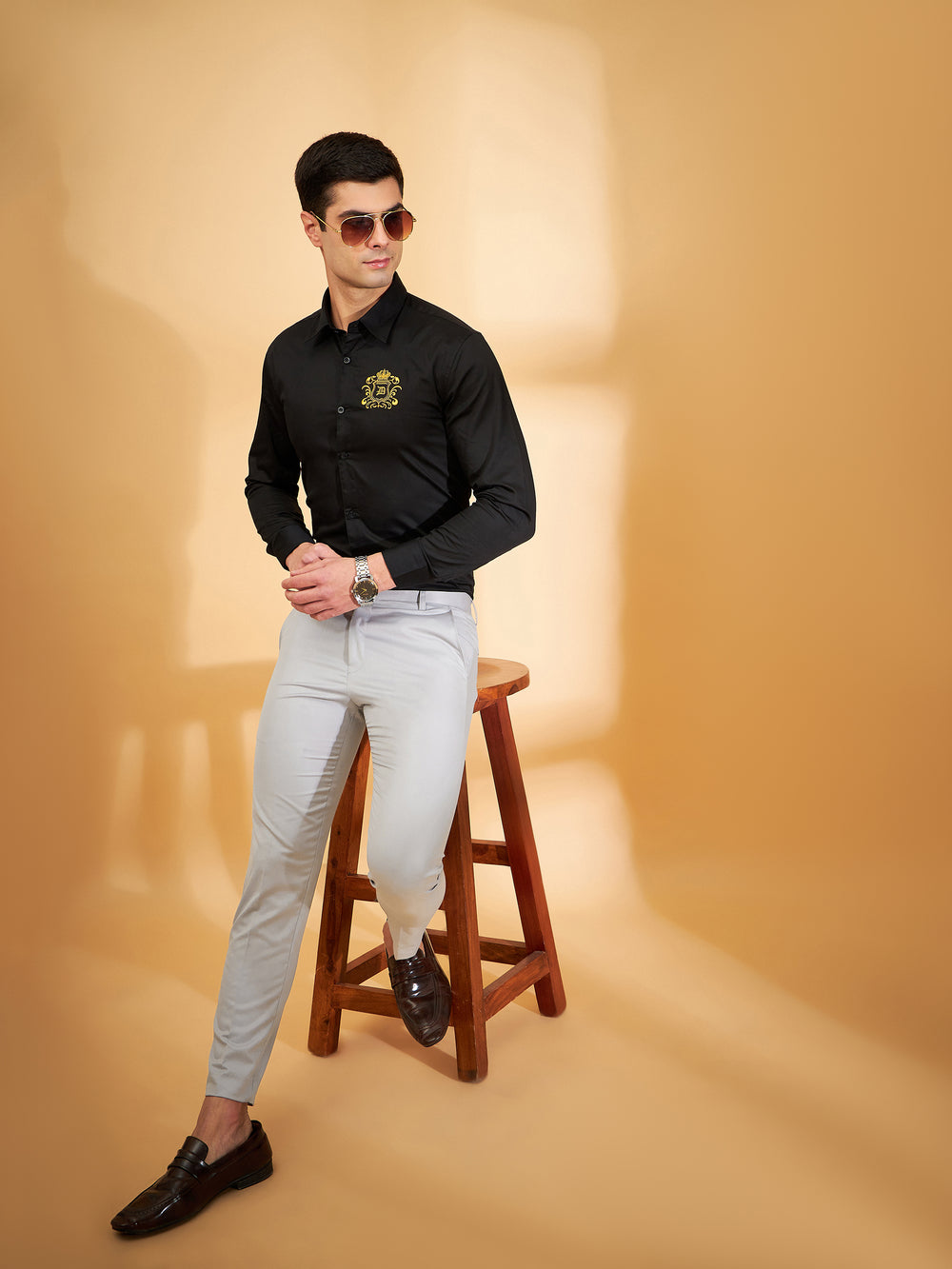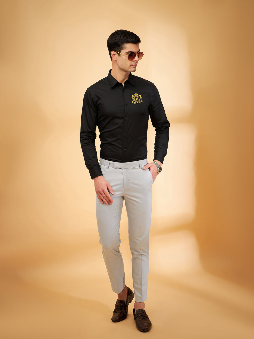 Our stylist has paired these trousers with a belt