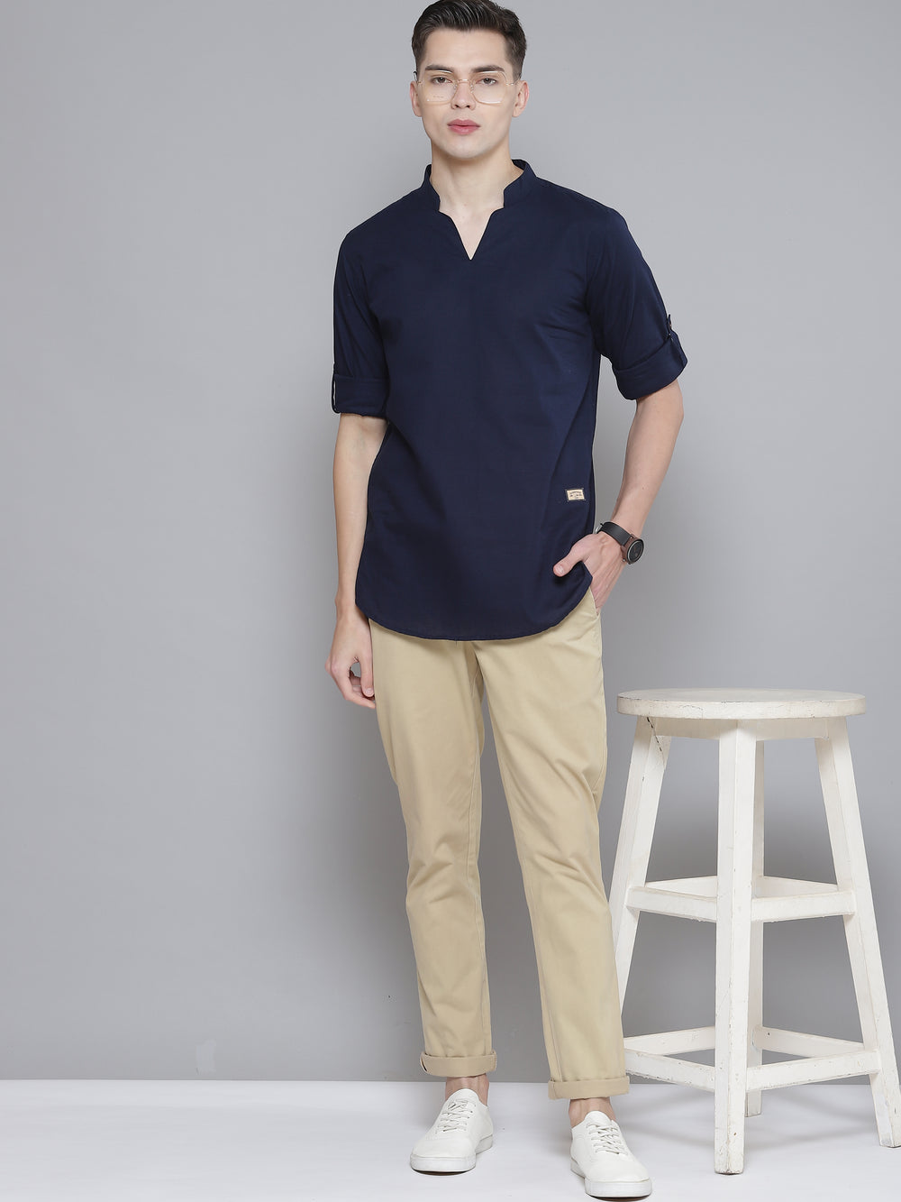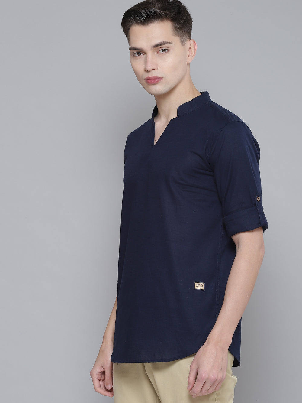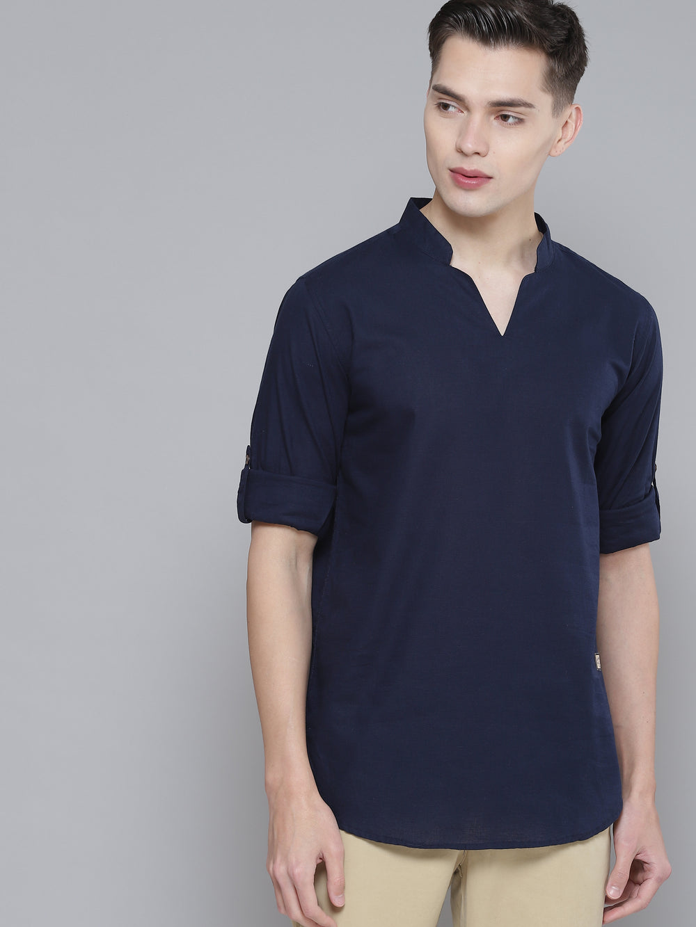 - Long, roll-up sleeves