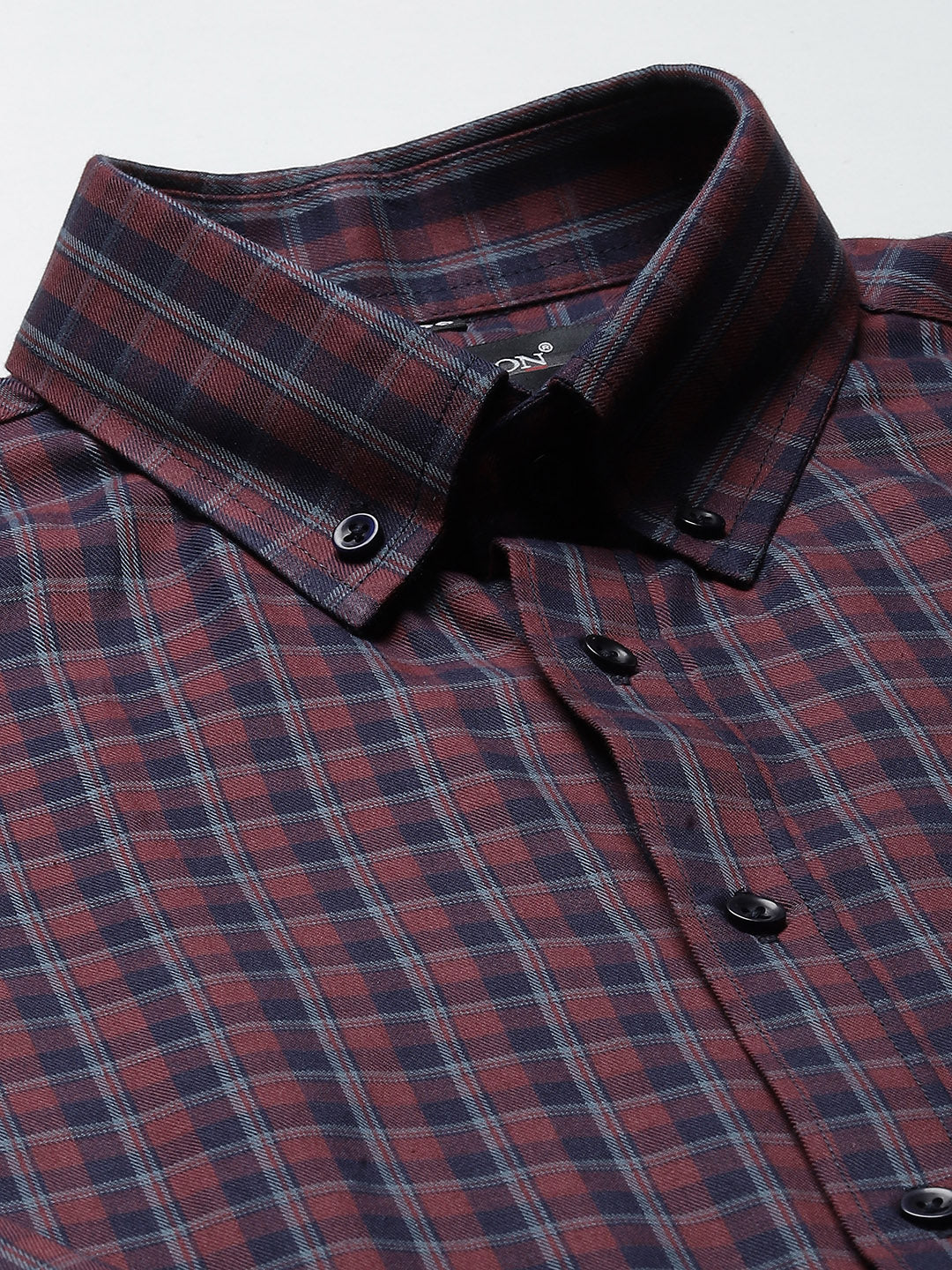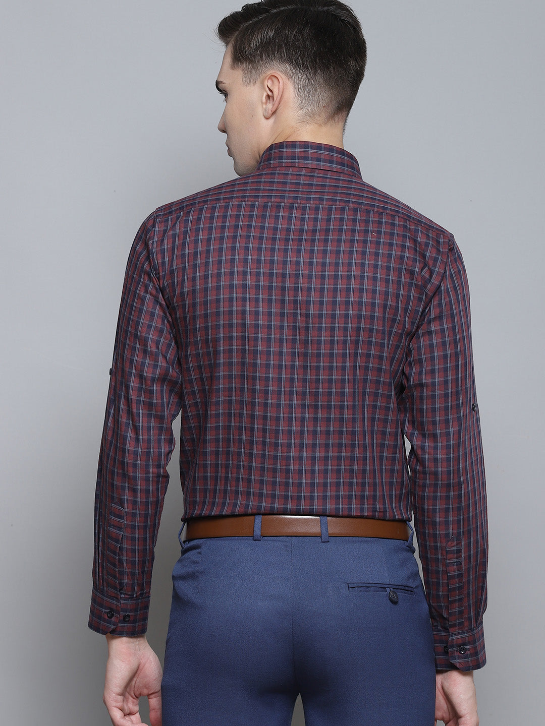 Purple gingham checks checked opaque Formal shirt ,has a button-down collar, button placket, 1 patch pocket, long roll-up sleeves, curved hem