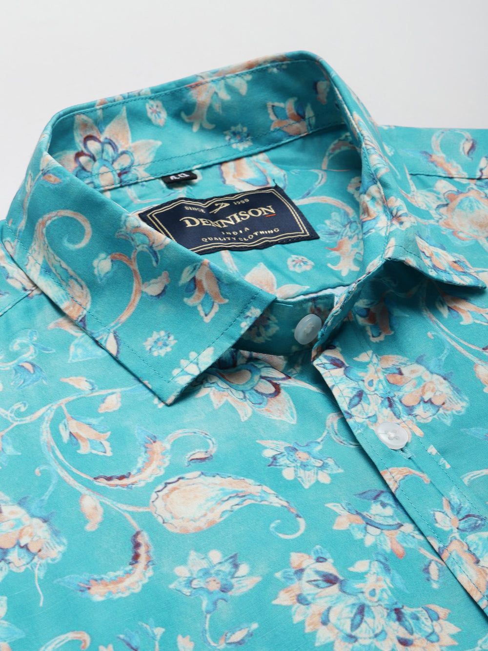 color — Men Turquoise Blue Smart Slim Fit Floral Printed Formal Shirt