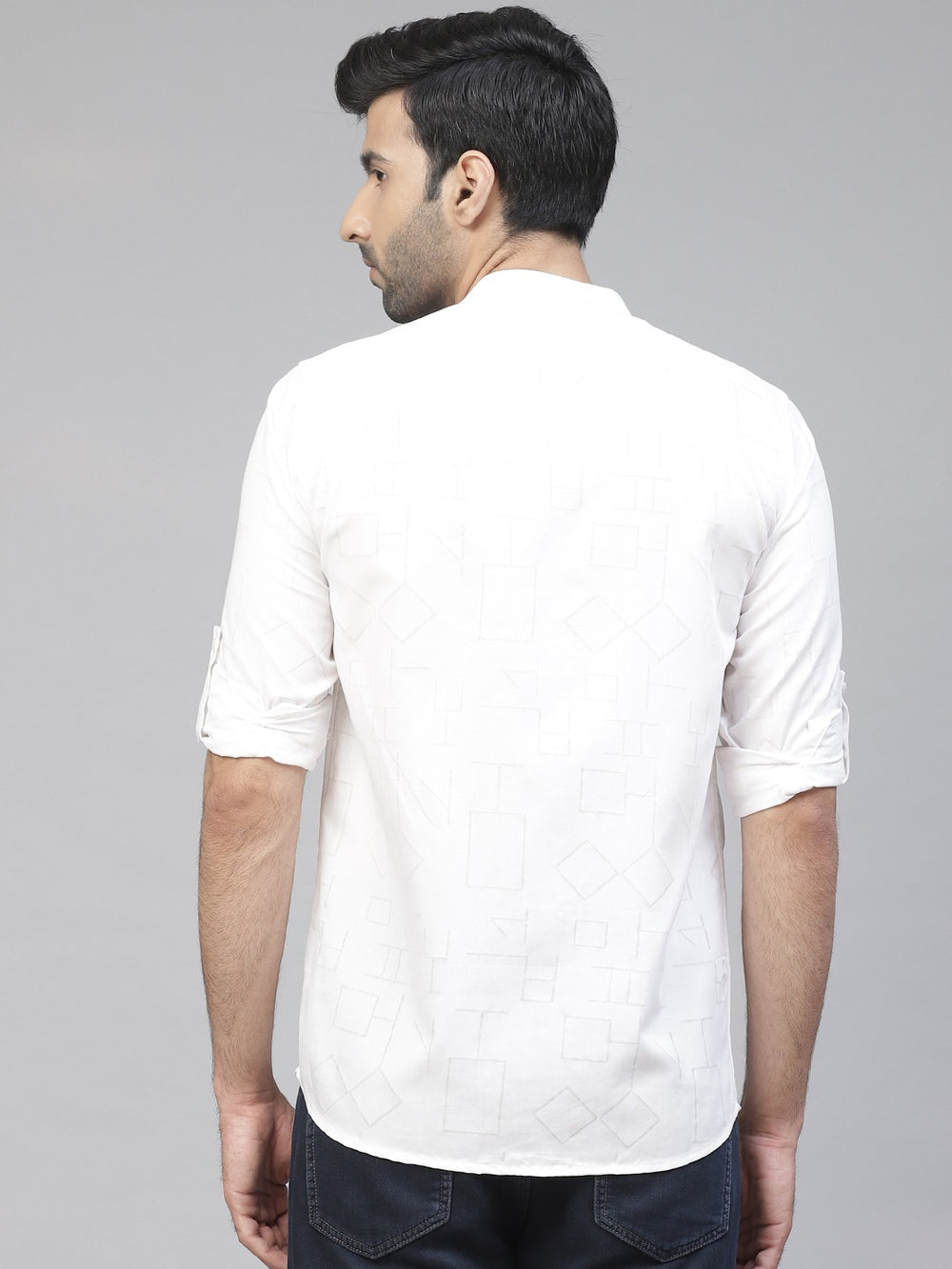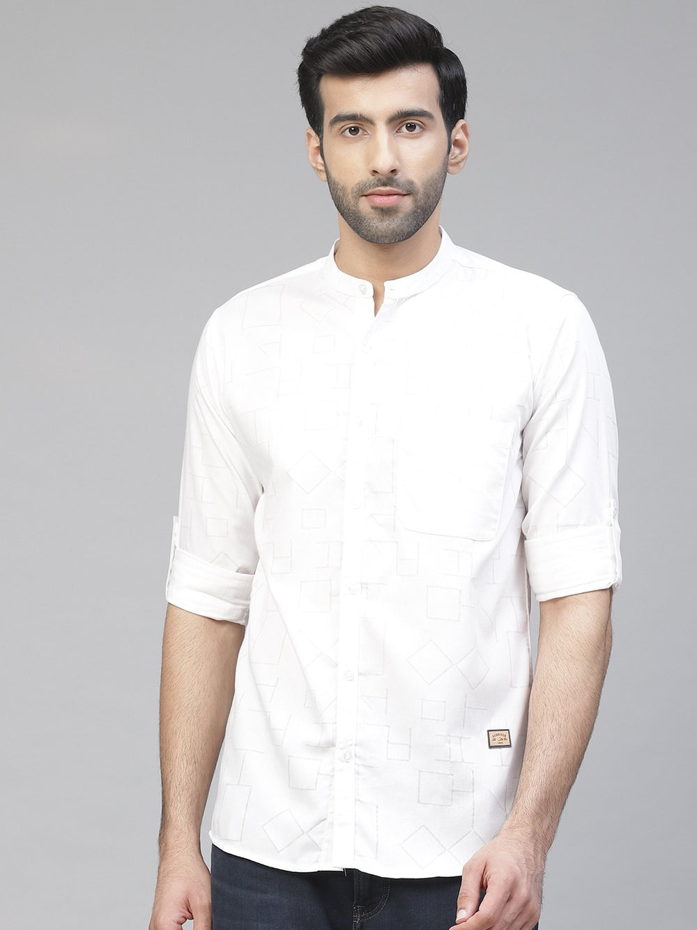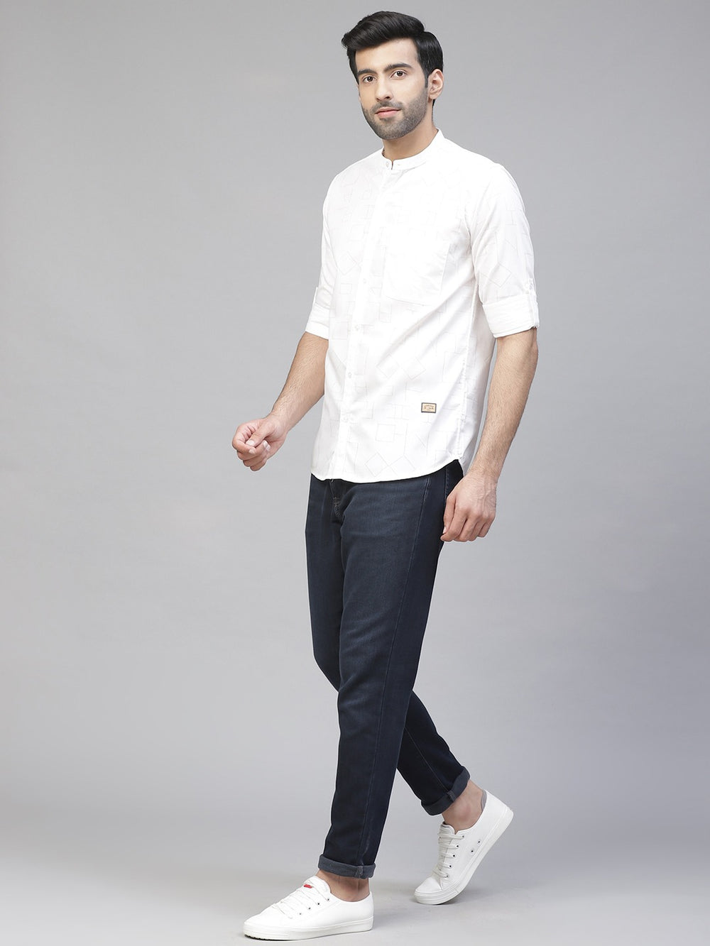 This in-style shirt from DENNISON will help you nail a handsome look. Ideal for an upscale business event or party, this white shirt with slim trousers and formal shoes achieves a perfectly polished look.