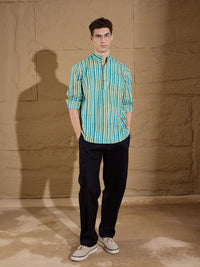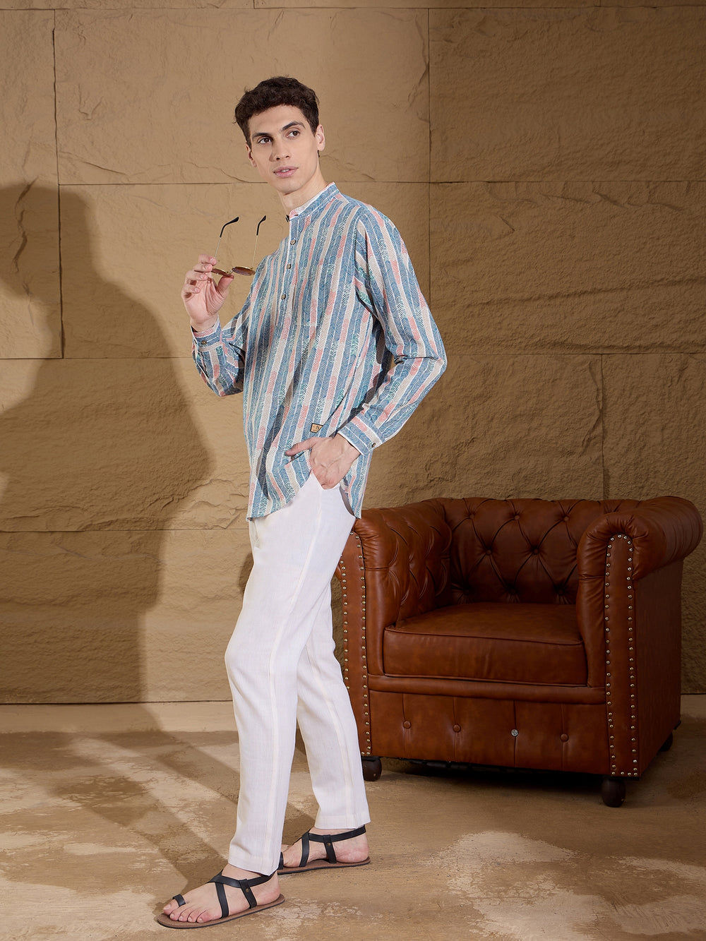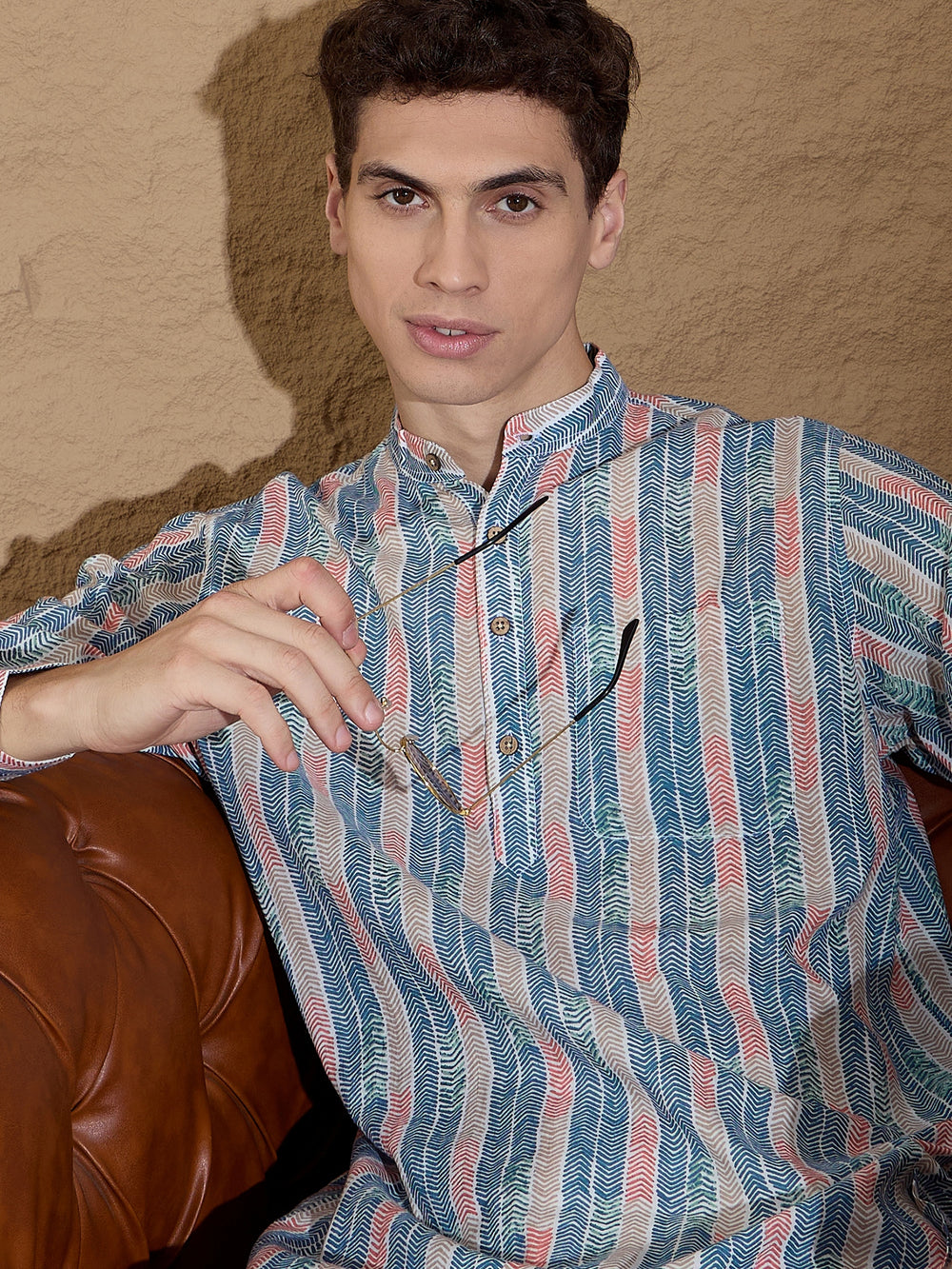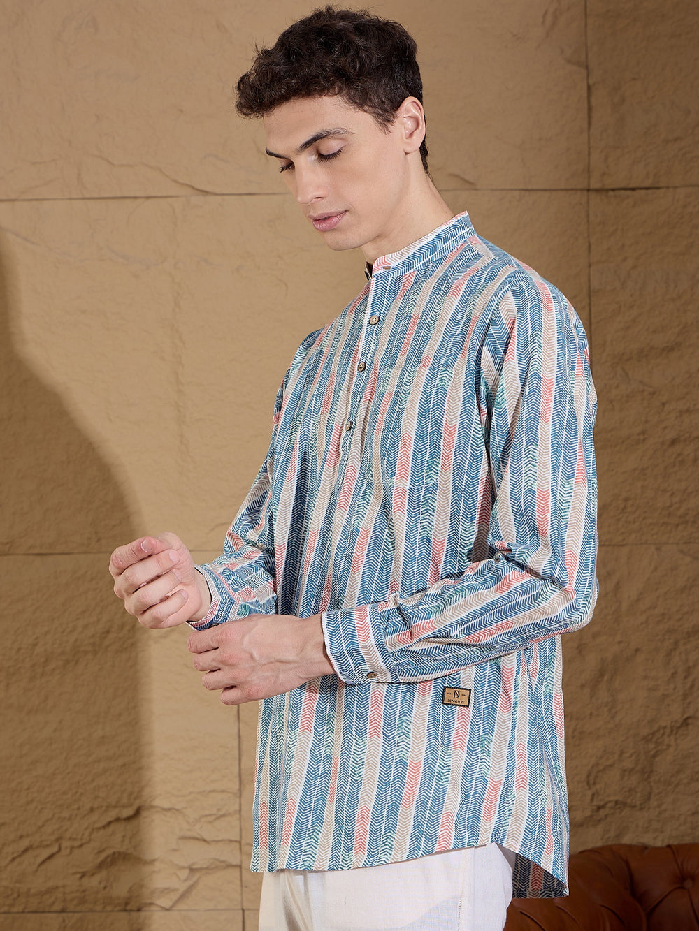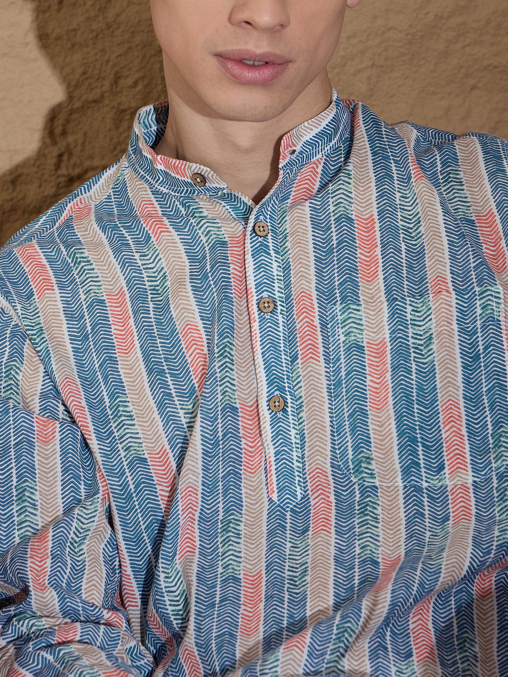Pair this short cotton kurta with slim-fit jeans or chinos for a relaxed, casual look. Add loafers or sneakers to complete the effortlessly stylish outfit.