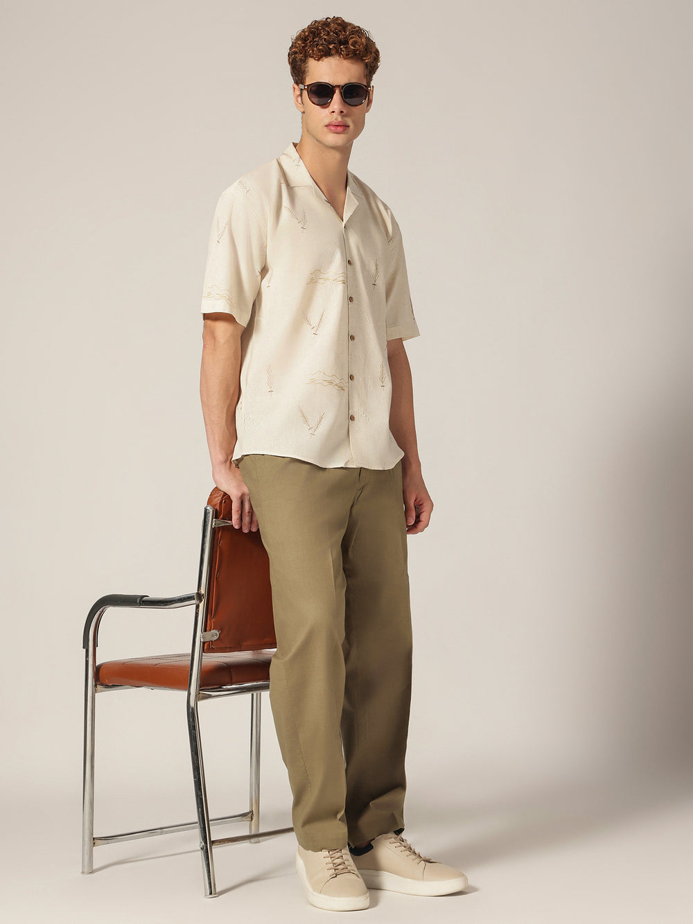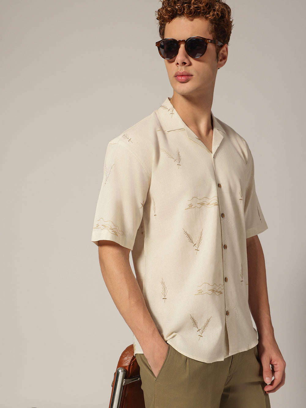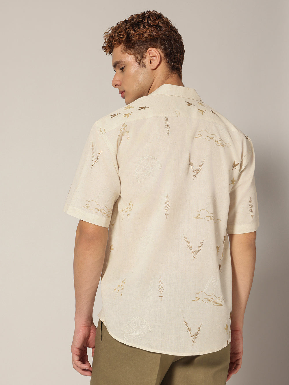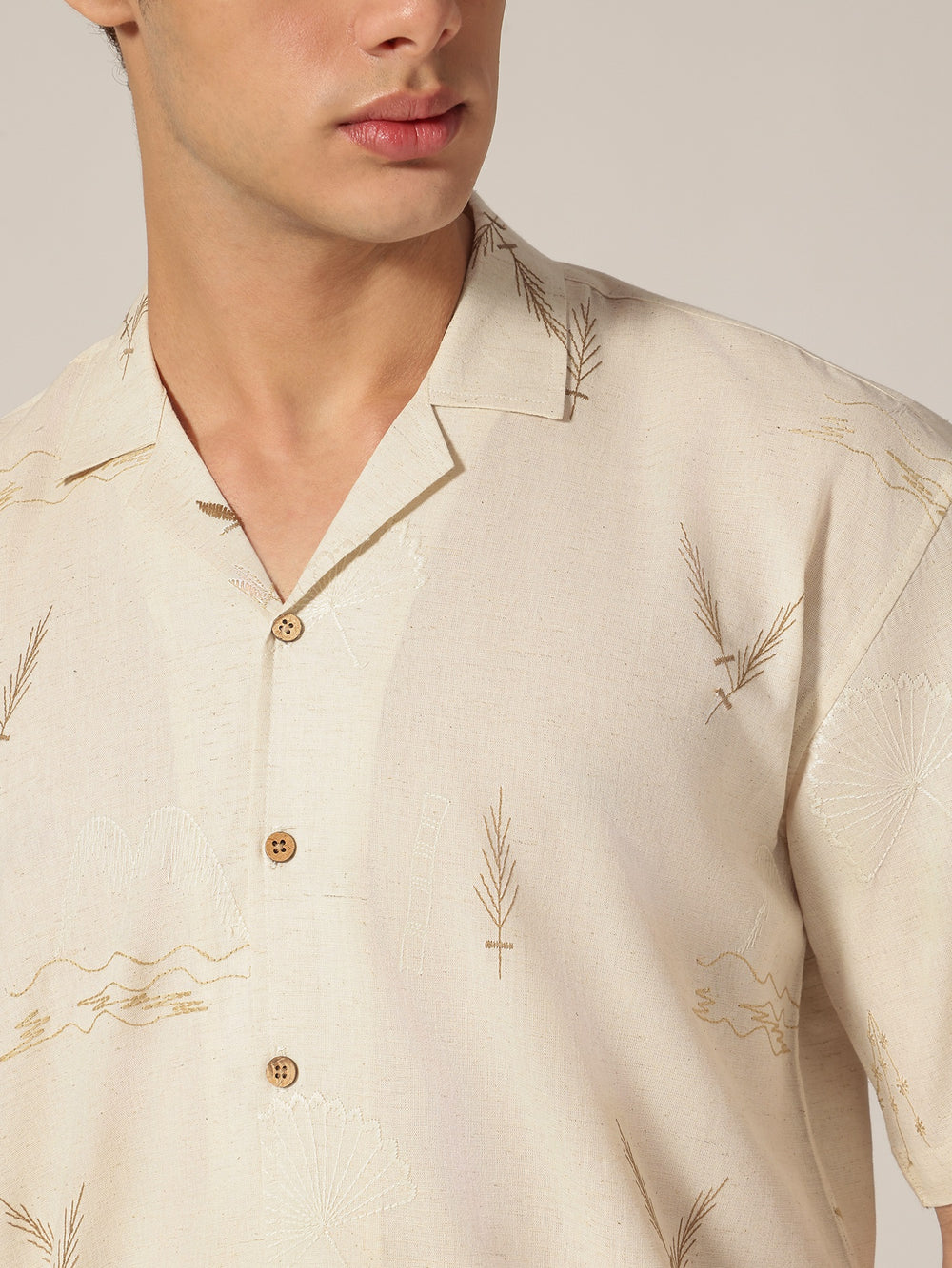 This Oversized Fit Casual shirt is crafted from soft Cotton and features subtle Embroidered detailing. Designed with a Drop Shoulder, Cuban Collar, Half Sleeves, Straight Hemline, and a no pocket finish for a clean, modern look.
