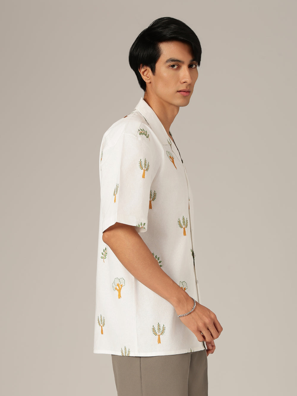 Oversized casual shirt with Tropical embroidered accents, drop-shoulder silhouette, half sleeves, Cuban collar, and straight hemline. Designed for relaxed comfort with breathable fabric and effortless street-ready appeal that elevates everyday casual styling.