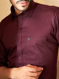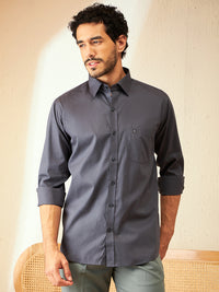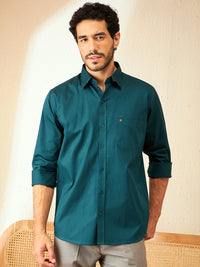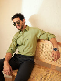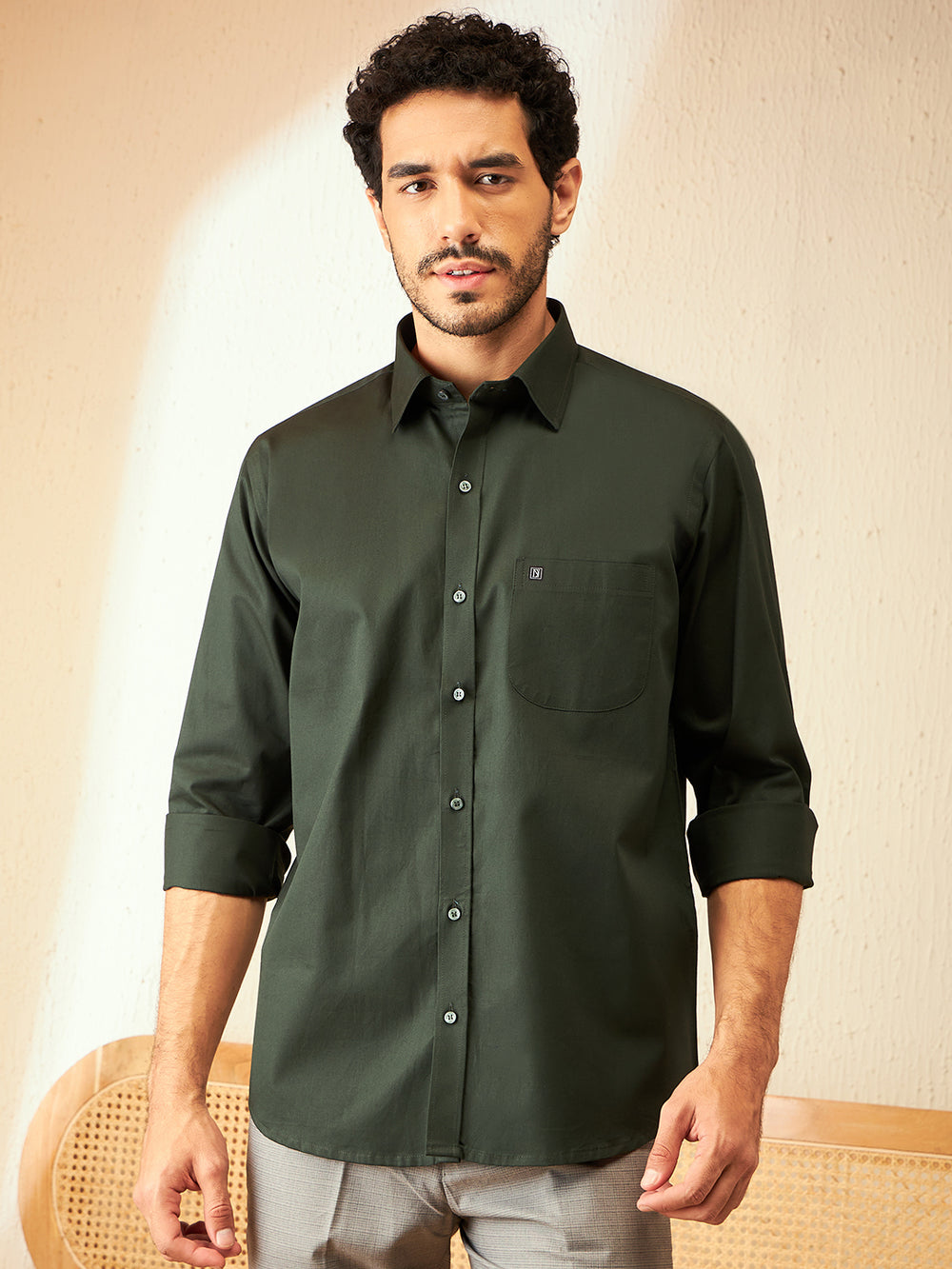 Olive Green solid opaque Formal shirt ,has a spread collar, button placket, 1 patch pocket, long regular sleeves, curved hem