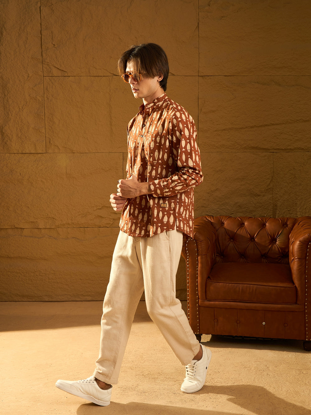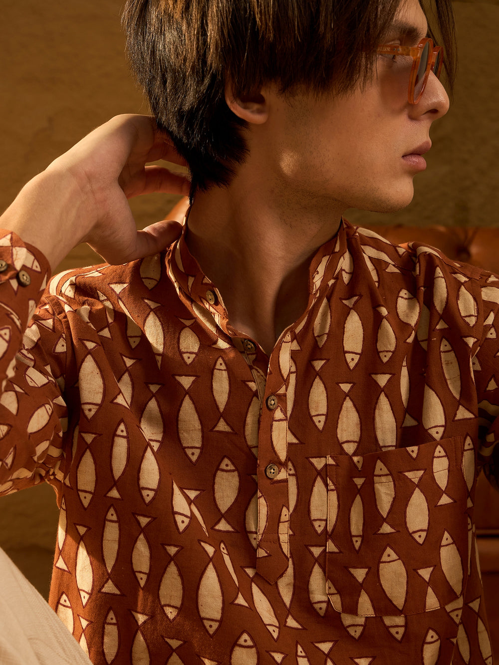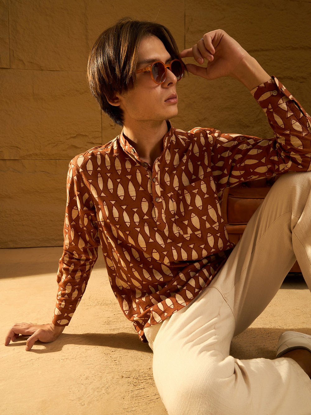 Pair this short cotton kurta with slim-fit jeans or chinos for a relaxed, casual look. Add loafers or sneakers to complete the effortlessly stylish outfit.