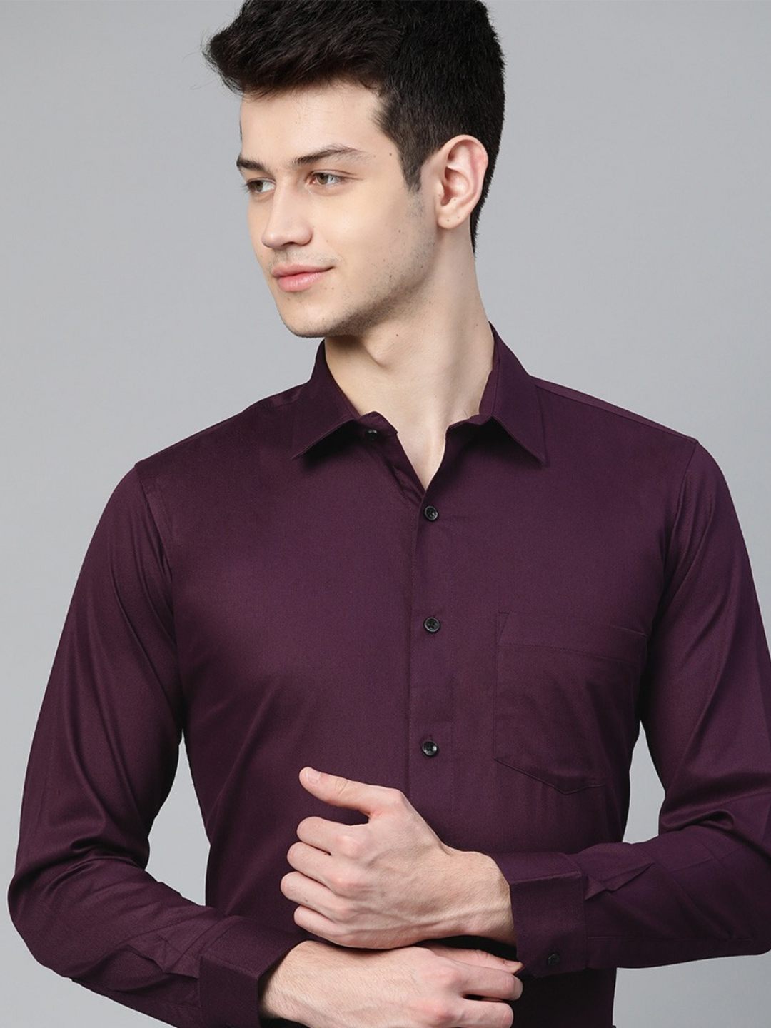 Purple: Smart Slim Fit Solid Twill Formal Shirt
