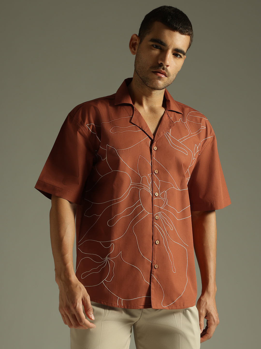 Rust: Embroidered Drop Shoulder Oversized Shirt