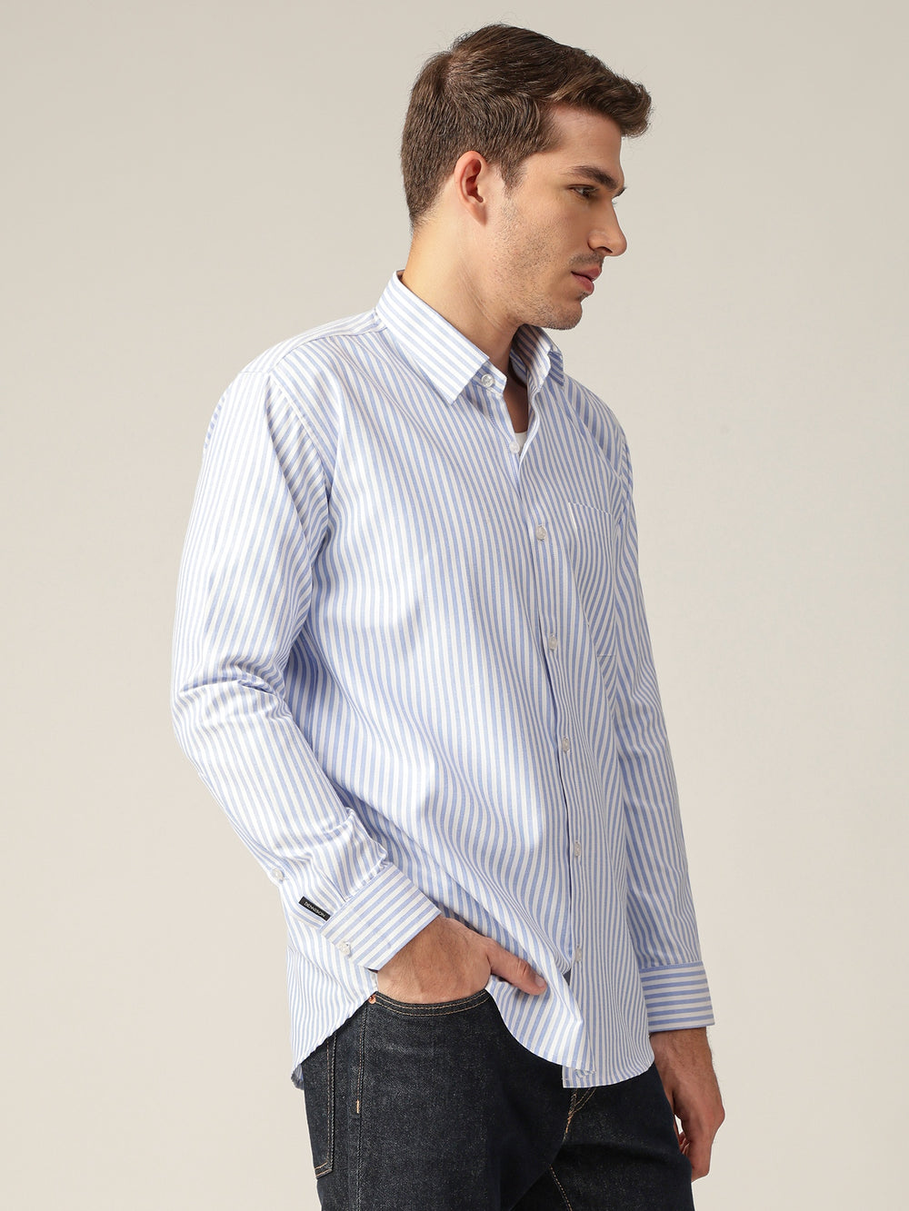Sky Blue & White: Vertical Stripes Formal Shirt