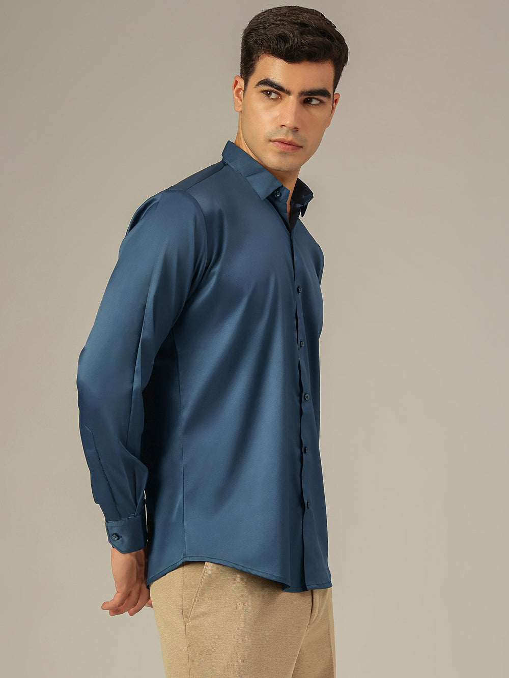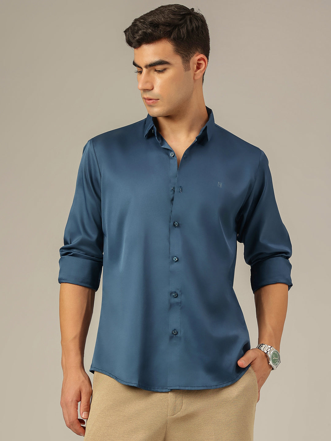 Teal Blue: Premium Party Wear Formal Satin Shirt