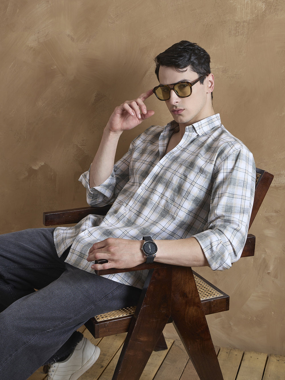 Give your casual wardrobe a modern twist with this cotton check shirt from Dennison. Designed with a Cuban collar, drop shoulders, and curved hemline, its oversized silhouette offers comfort and laid-back style—ideal for relaxed weekends, vacations, or creative streetwear looks.