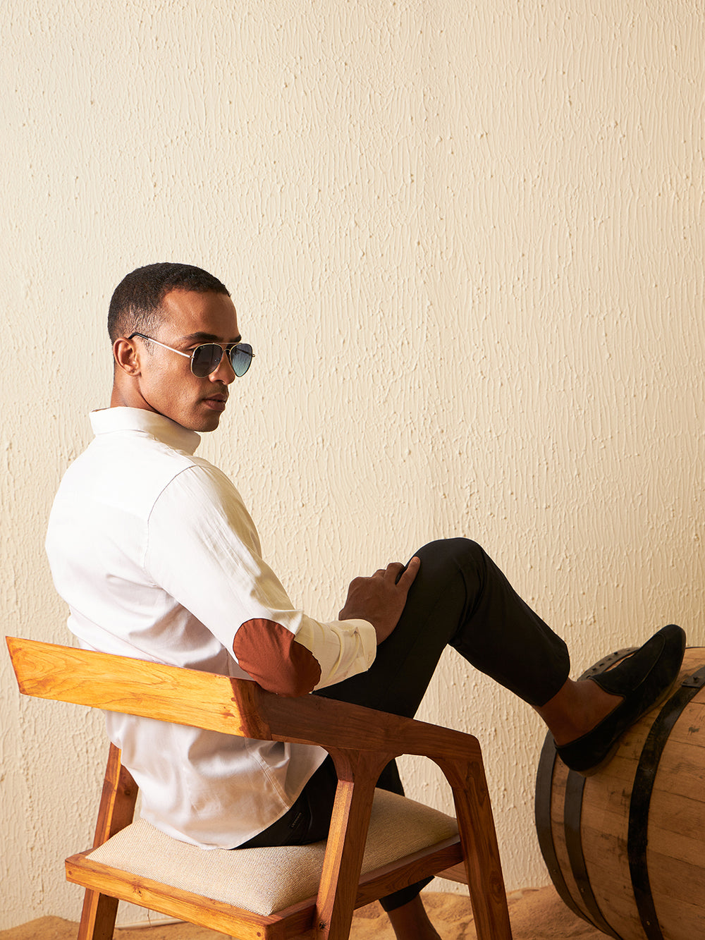 This classic cotton shirt features a spread collar and stylish elbow patches, adding a touch of sophistication to your look. Versatile and comfortable, it's an excellent choice for both casual and semi-formal occasions.