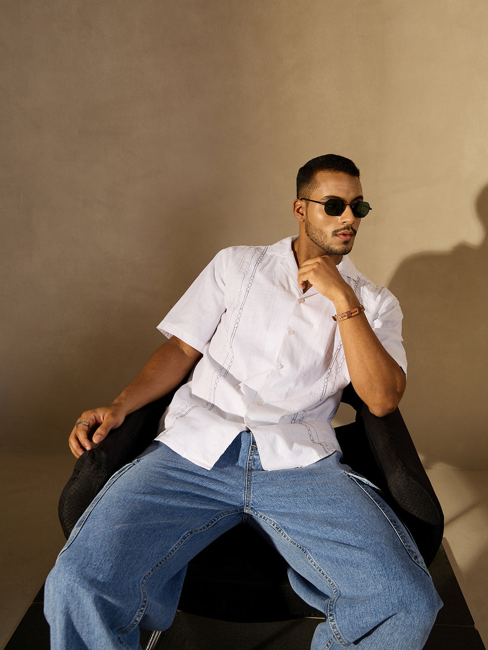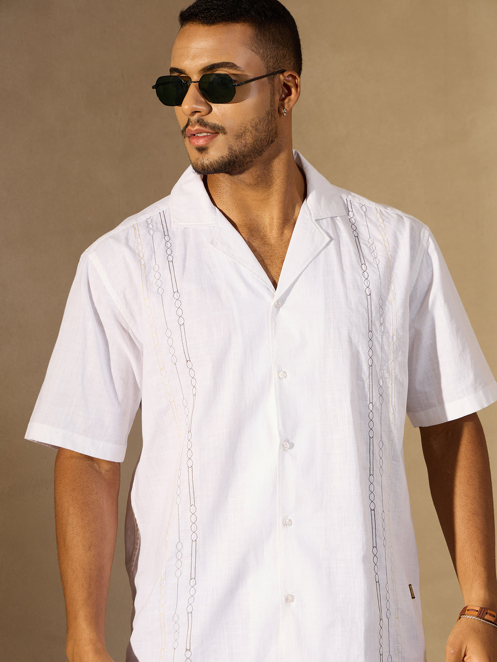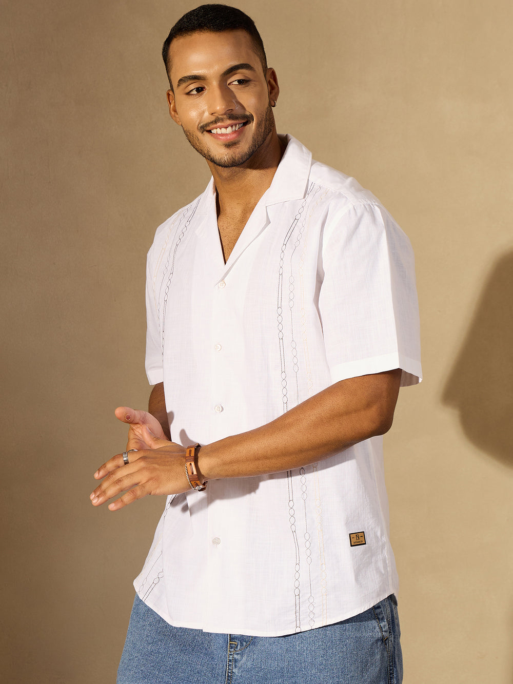 Elevate your casual style with this cotton embroidered shirt from Dennison. Featuring delicate embroidery, a relaxed Spread collar, and drop shoulders, it blends craftsmanship with modern design. The oversized silhouette and curved hem make it an easy statement piece for those who appreciate subtle detail and breezy comfort.