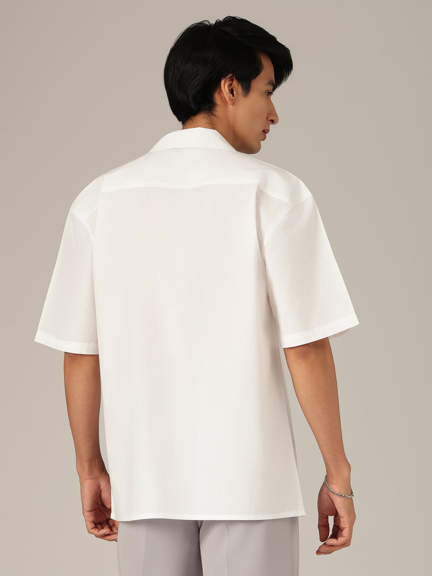 This Oversize Fit Embroidered Shirt crafted from soft cotton features half sleeves, a relaxed drop-shoulder, and a refined Cuban collar. A stylish casual shirt with clean embroidery, offering comfort and effortless everyday elegance.
