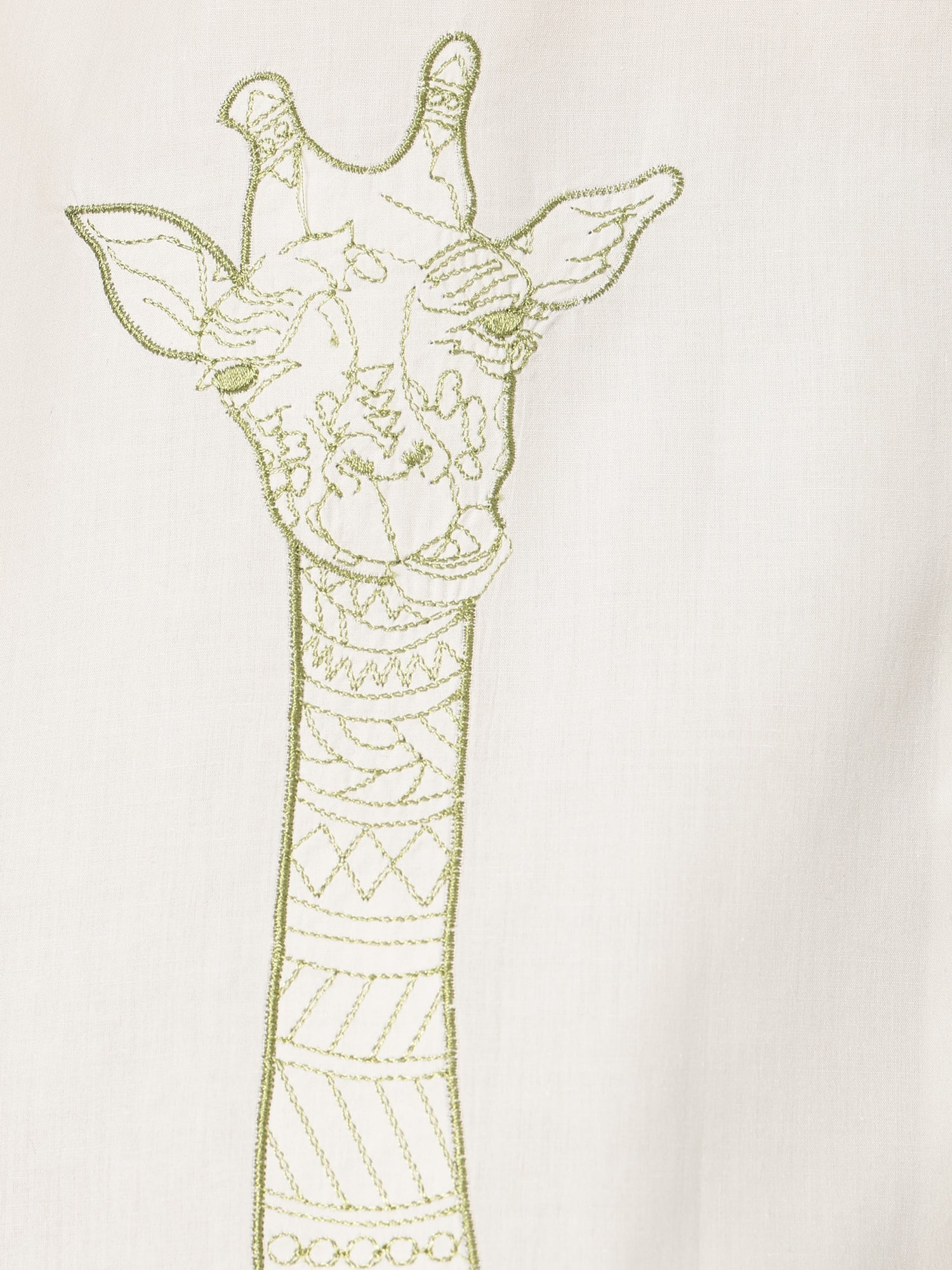White & Green: Embroidered Drop Shoulder Oversized Shirt