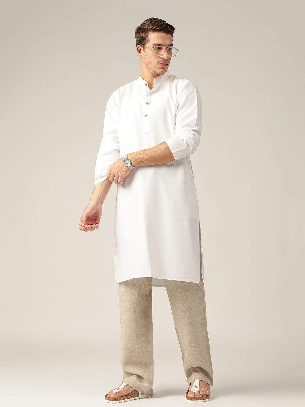 A sleek and modern essential, this Solid Kurta offers effortless sophistication. Its structured silhouette and clean lines make it suitable for both daywear and subtle evening elegance.
