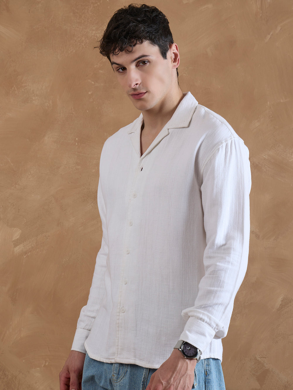Designed for laid-back sophistication, this double gauge oversized shirt from Dennison offers breathable comfort with a bold silhouette. Featuring a Cuban collar, drop shoulders, and a curved hemline, it adds effortless edge to your everyday style. Ideal for modern trendsetters who prefer statement layering and comfort.