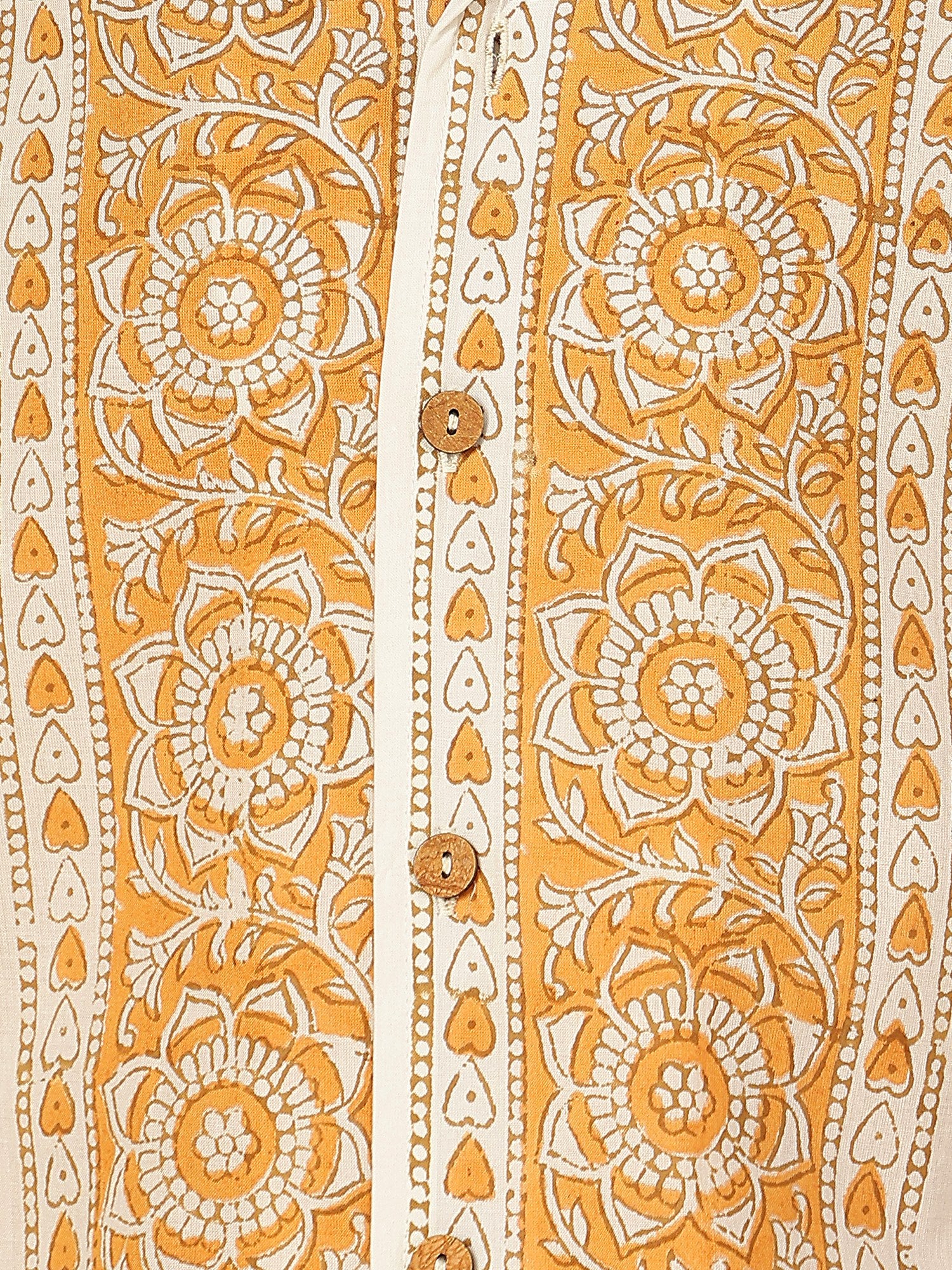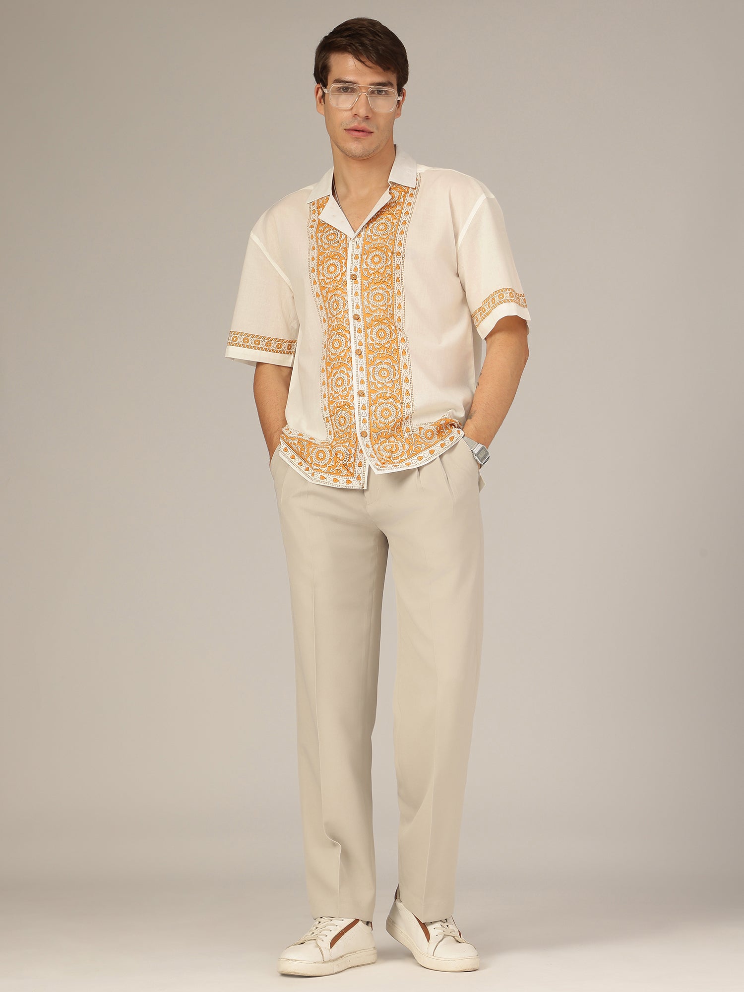 White & Mustard: Half Sleeves Placement Printed Shirt