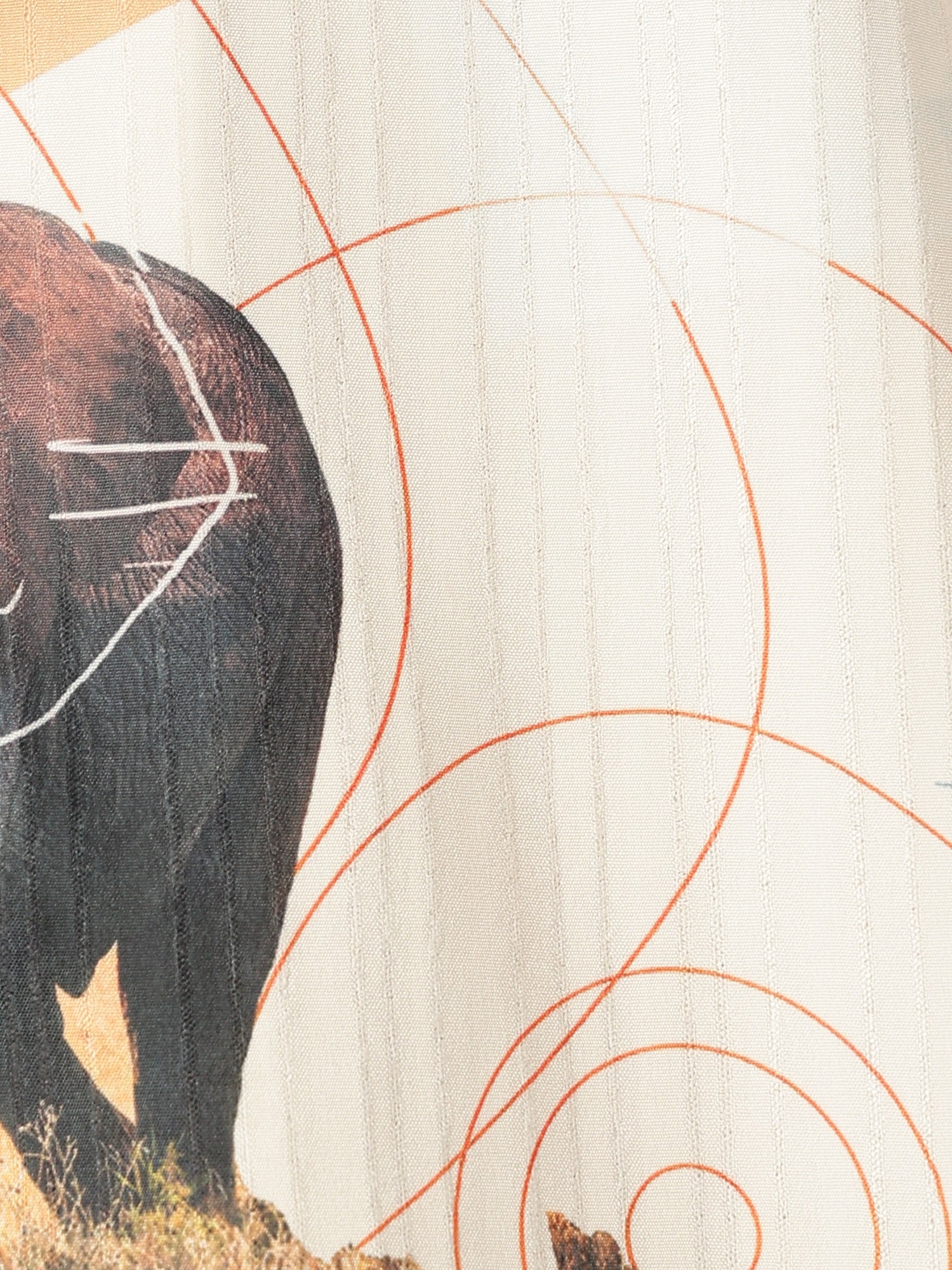 This textured placement printed shirt elevates casual style with a relaxed oversized silhouette. The Cuban collar and curved hemline add modern flair for effortless, visually striking everyday outfits.