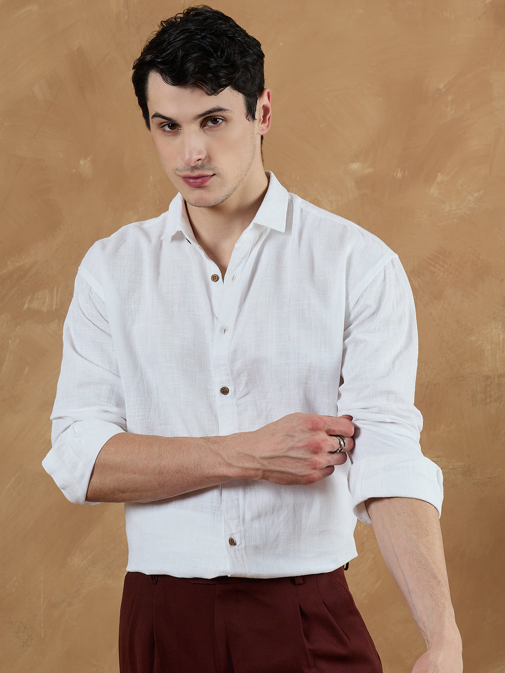 Elevate your wardrobe with this Oversize Fit Self Design Shirt, made from soft, breathable cotton Linen. Featuring a spread collar, drop-shoulder, and long sleeves, it’s a perfect pick for effortless casual styling.