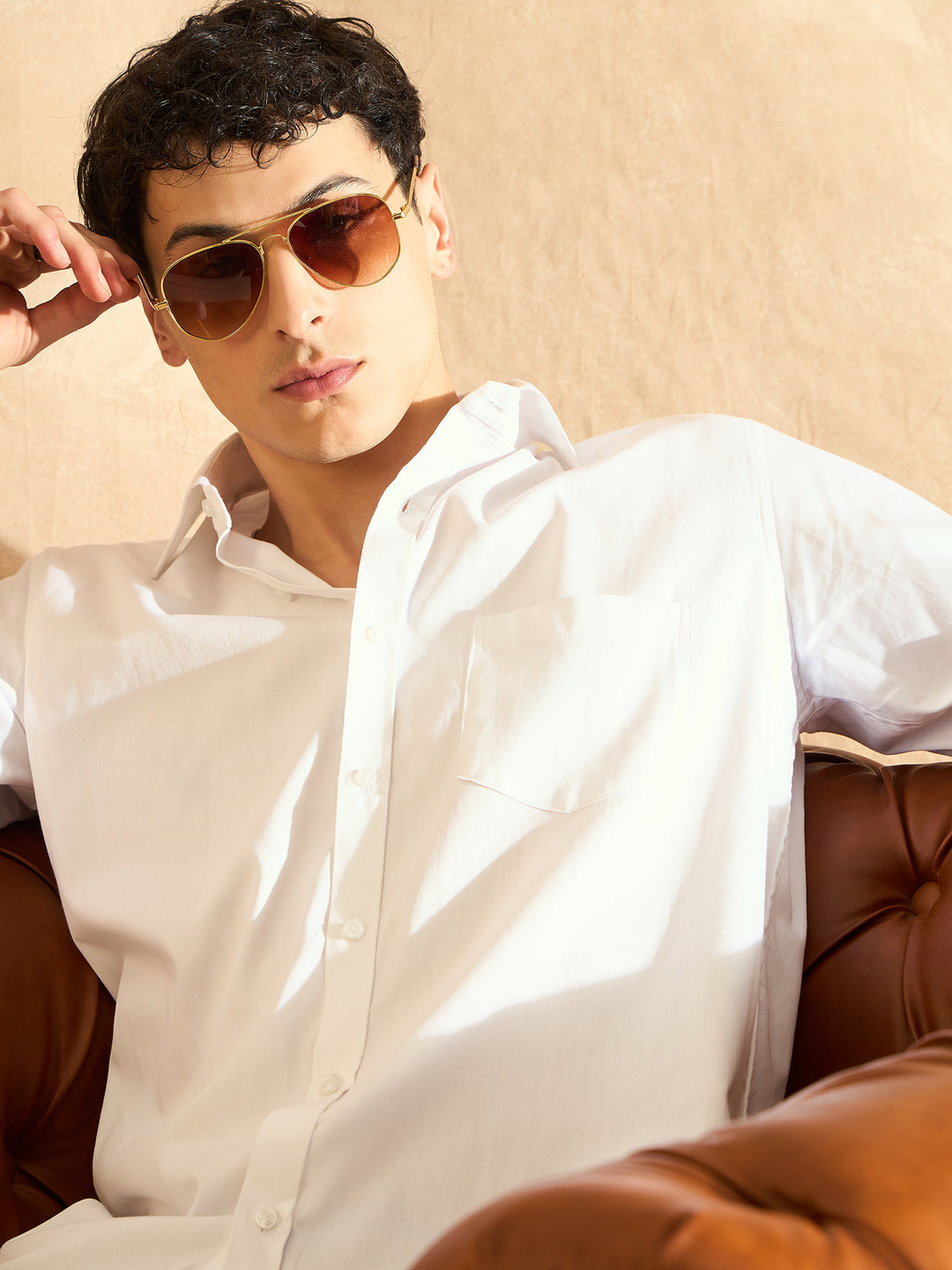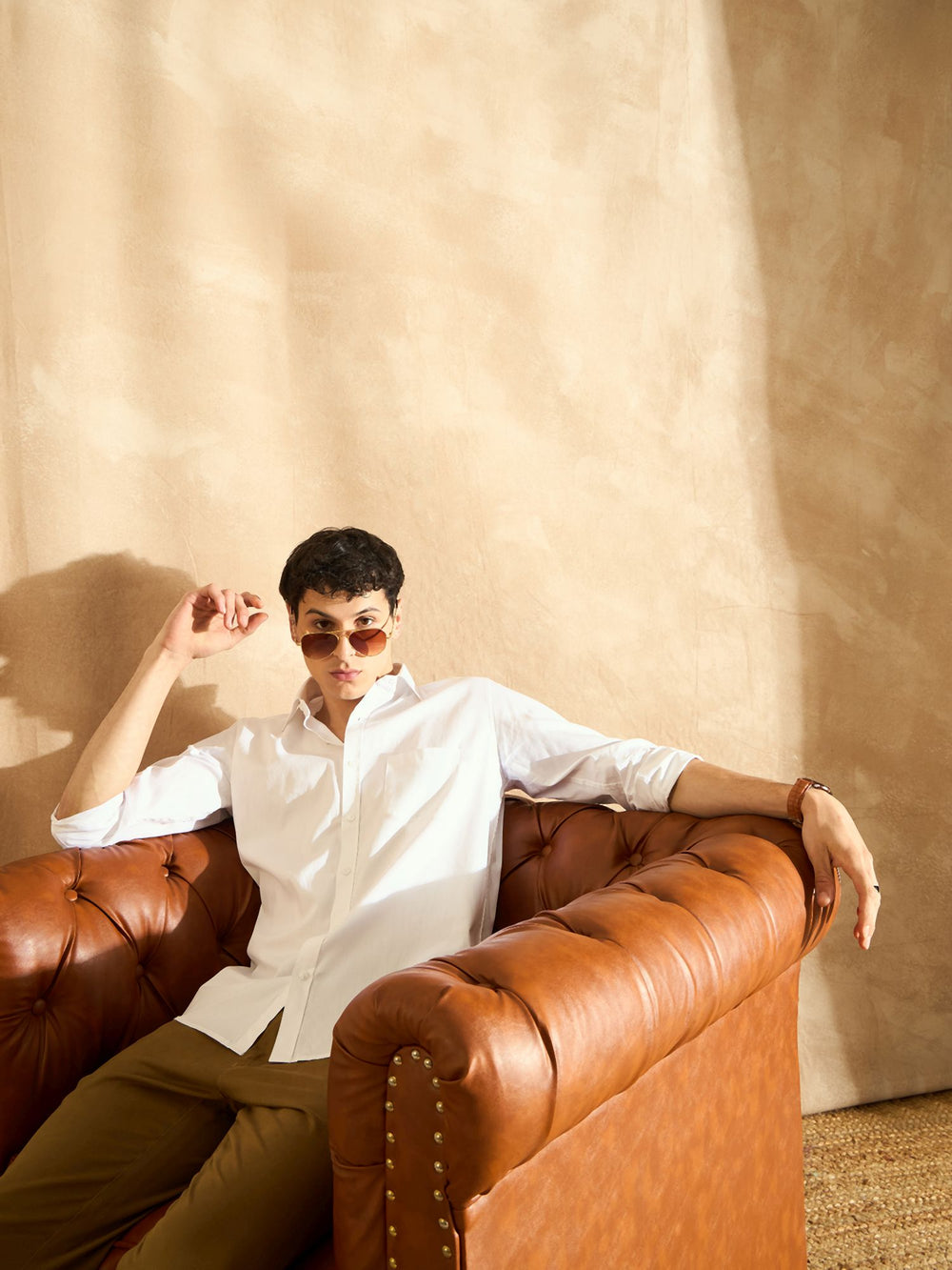 White: Solid Water Stain Repellent Twill Formal Shirt