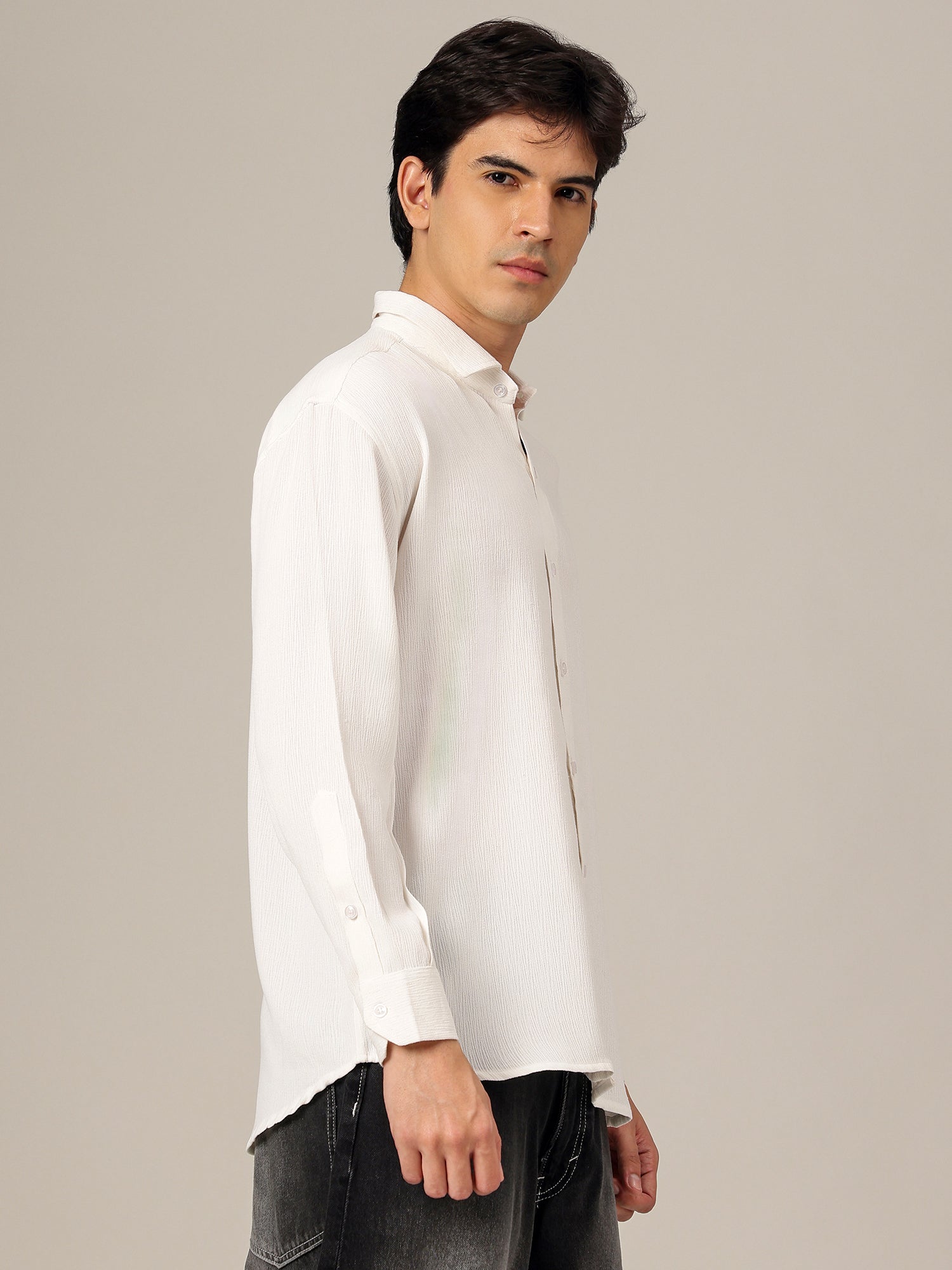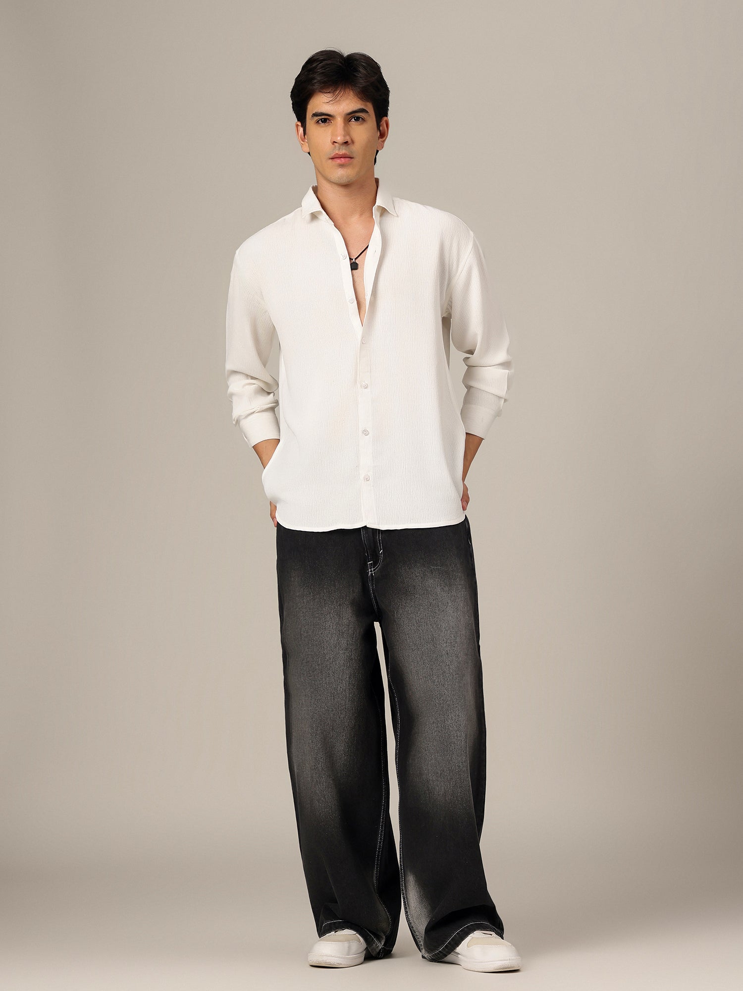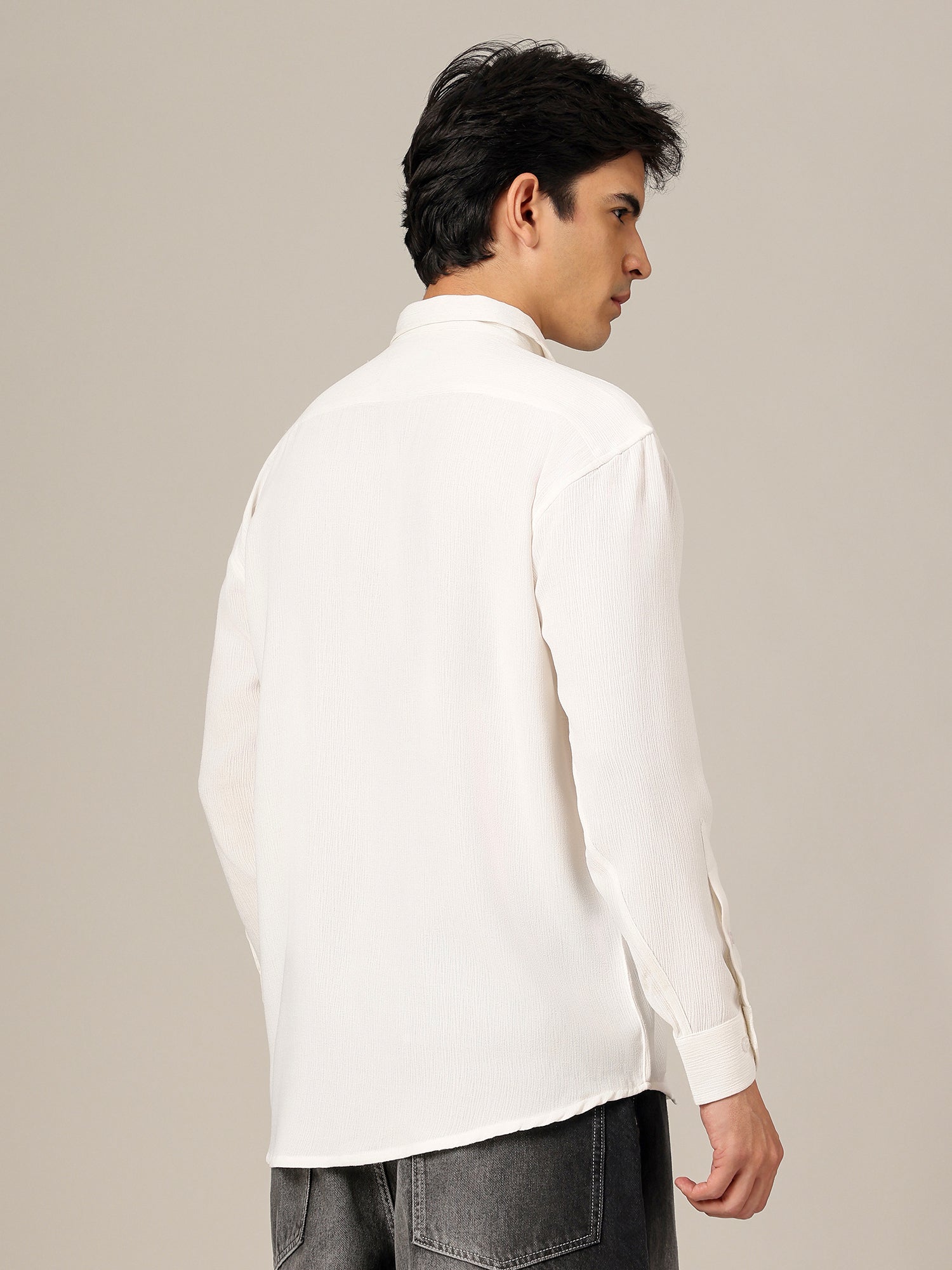 White: Textured Oversized Drop-Shoulder Casual Shirt